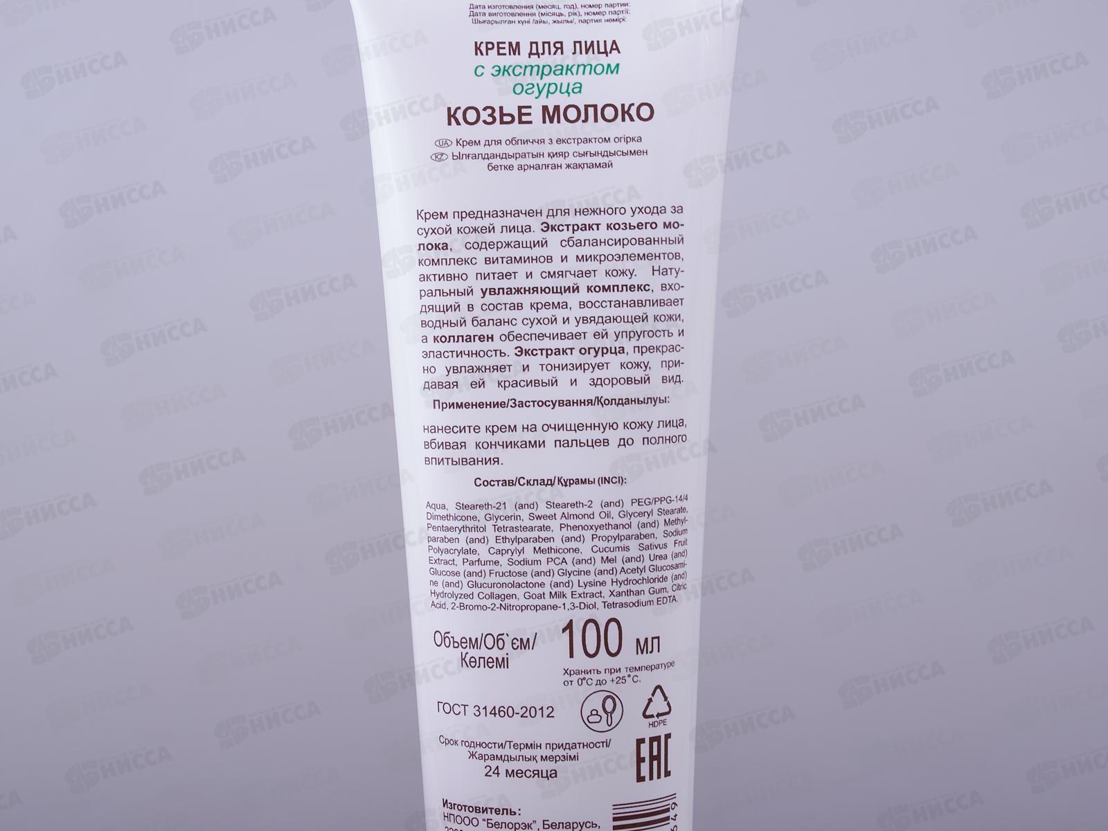 Активные компоненты: экстракт козьего молока, увлажняющий комплекс, коллаген, экстракт огурца