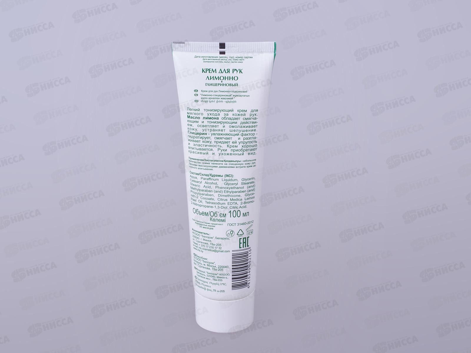 IRIS Крем для рук Лимонно-глицериновый 100мл *40