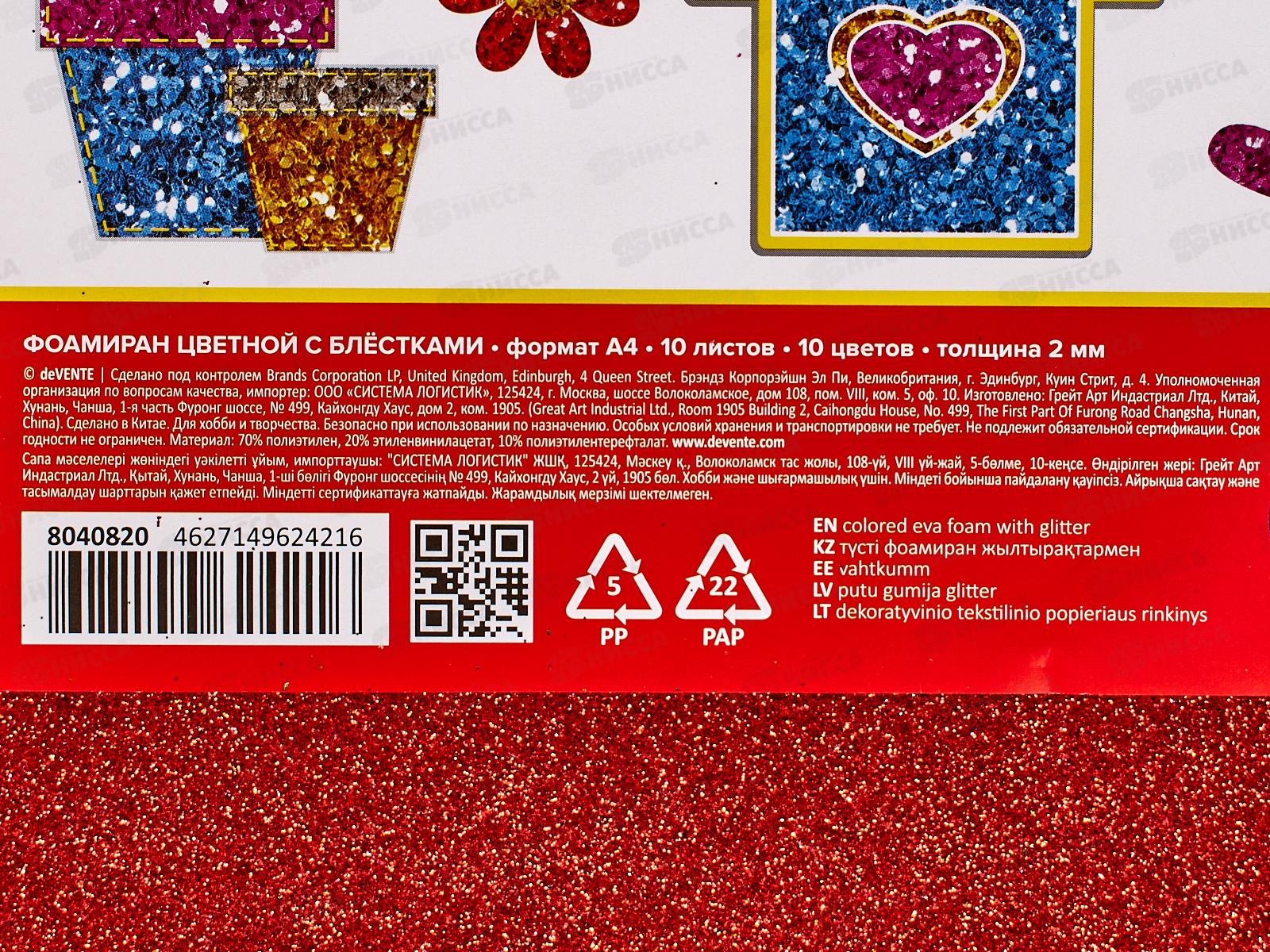 Фоамиран deVENTE А4 10 цветов с блестками 8040820