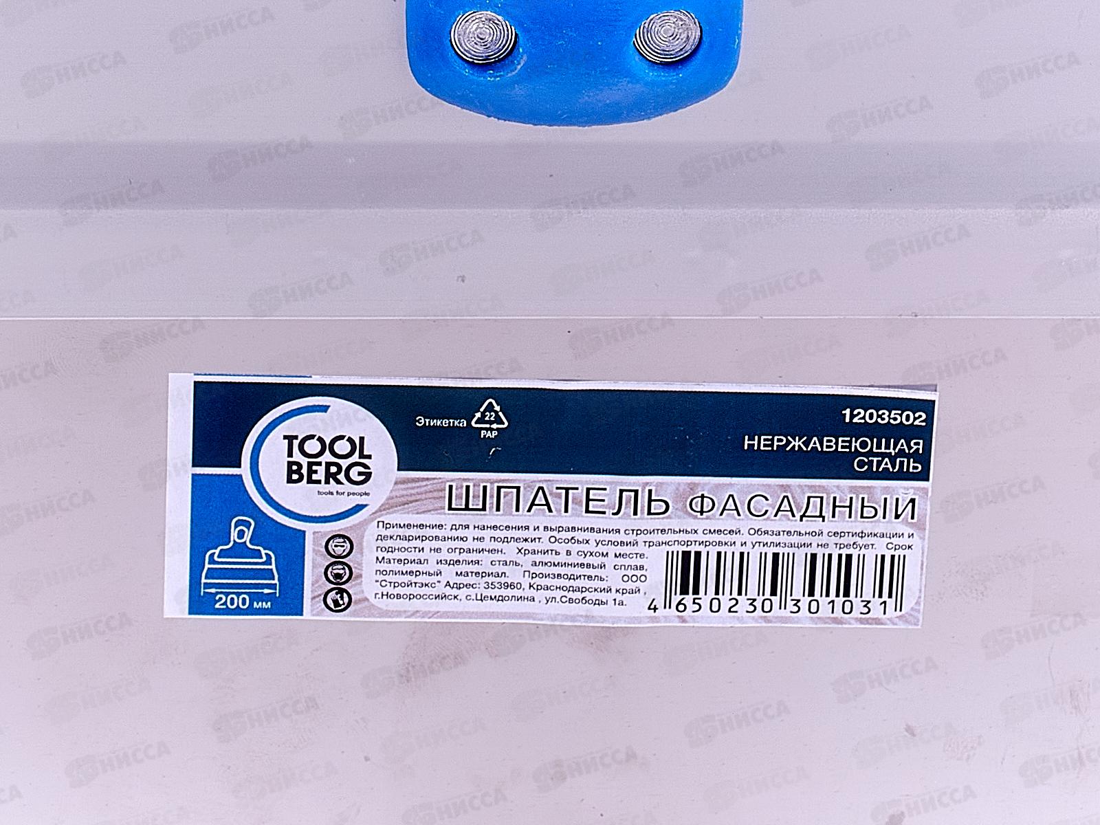 Шпатель фасадный нержавеющий двухкомпонентная ручка 200мм 1203502