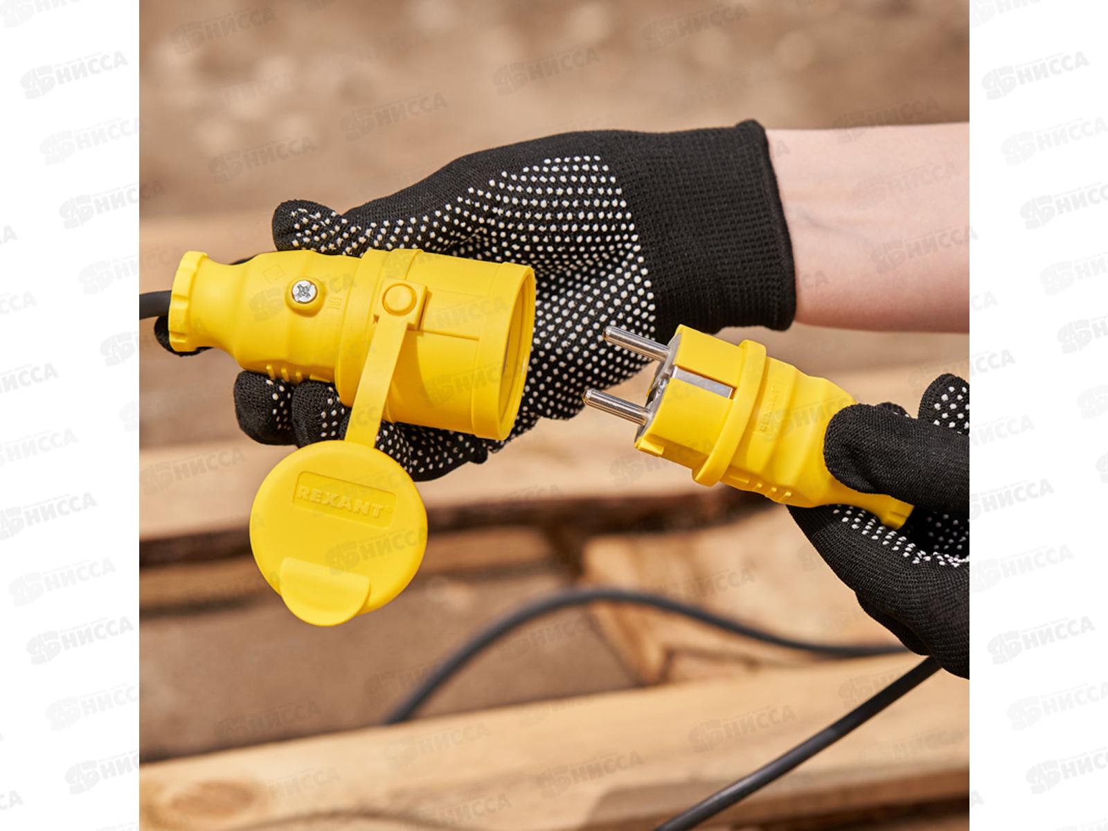 Вилка прямая REXANT 16А с заземлением, влагозащенная, каучук, желтая, 111-014 *30