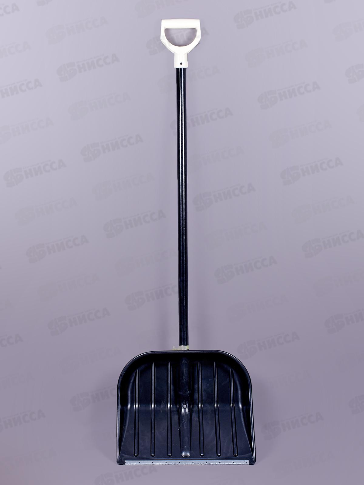 Лопата снеговая 430*360мм пластмассовая с оцинкованной планкой с черенком, V-ручка в оплете. ЛСУП-430 (Сузу