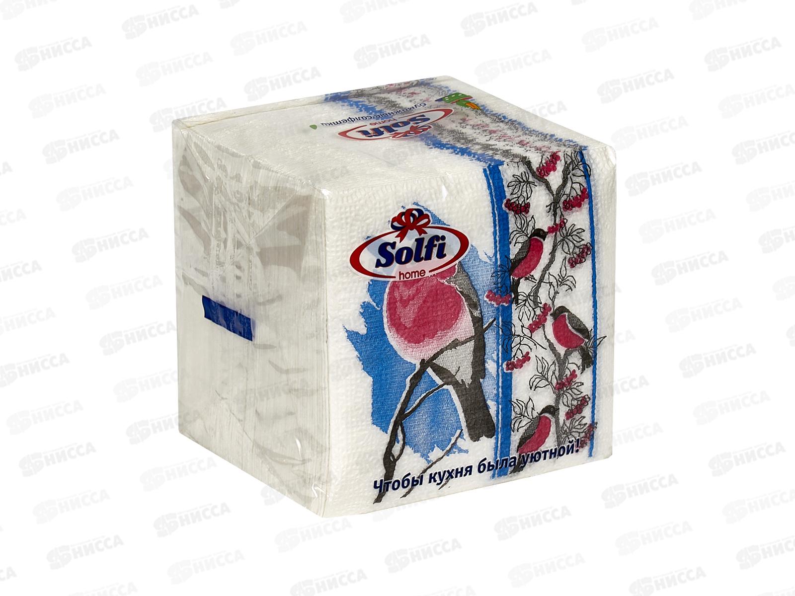 Салфетки СОЛФИ 100л с новогодним рисунком Снегирь *48