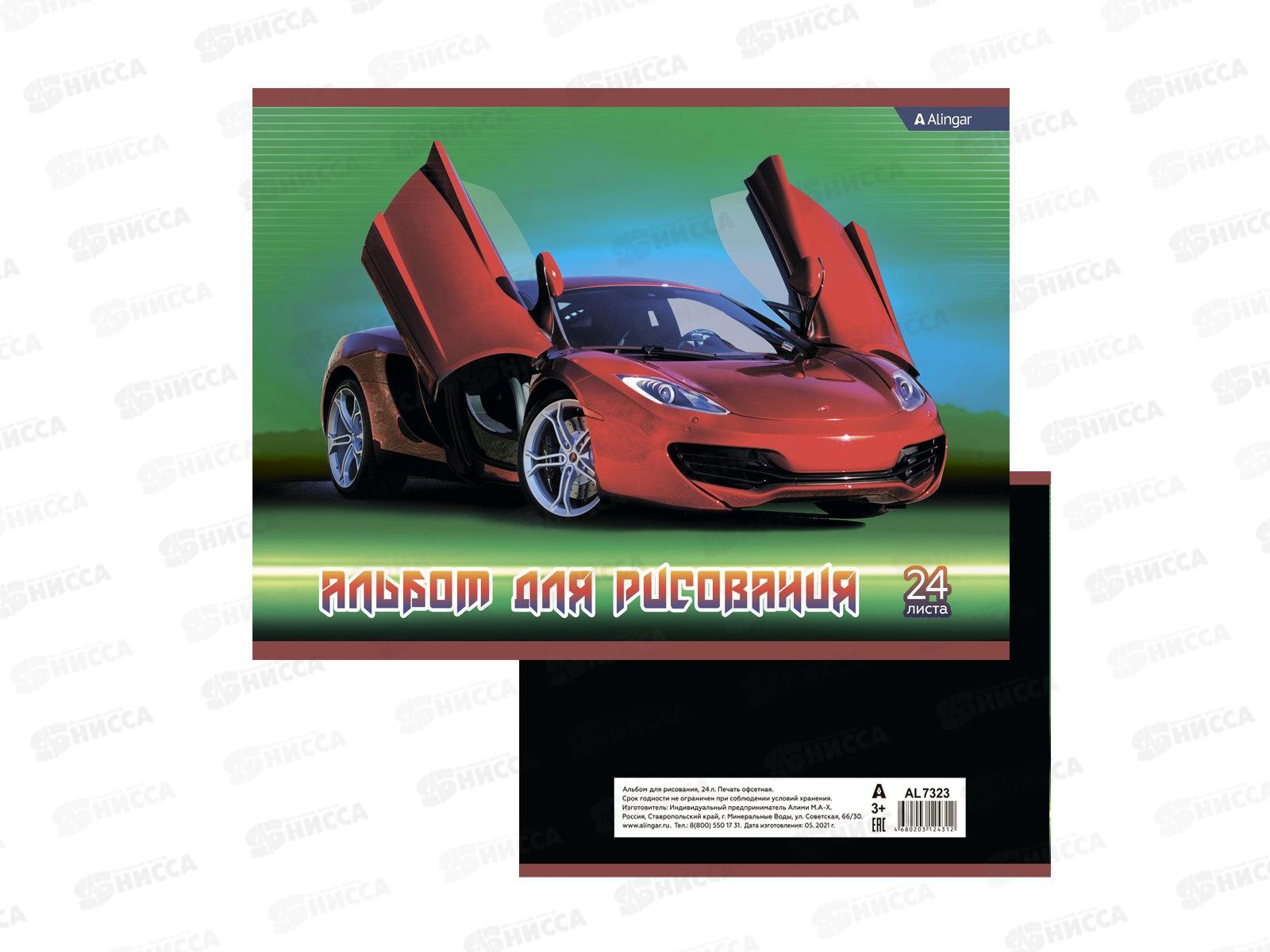 Альбом д/рис.24л Alingar "Машина" скрепка мел. картон AL7323 *36