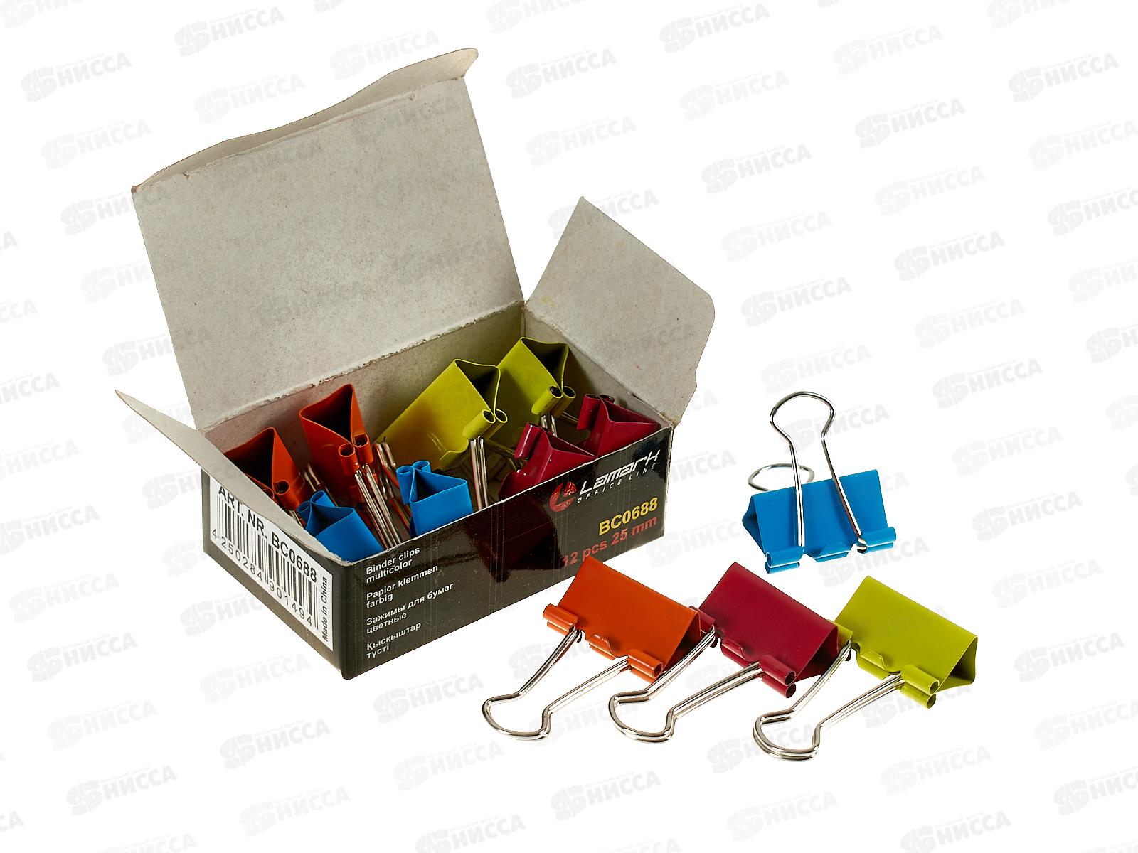 Зажим для бумаг LAMARK BC0688 25мм 12шт неоновый, картонная упаковка *12