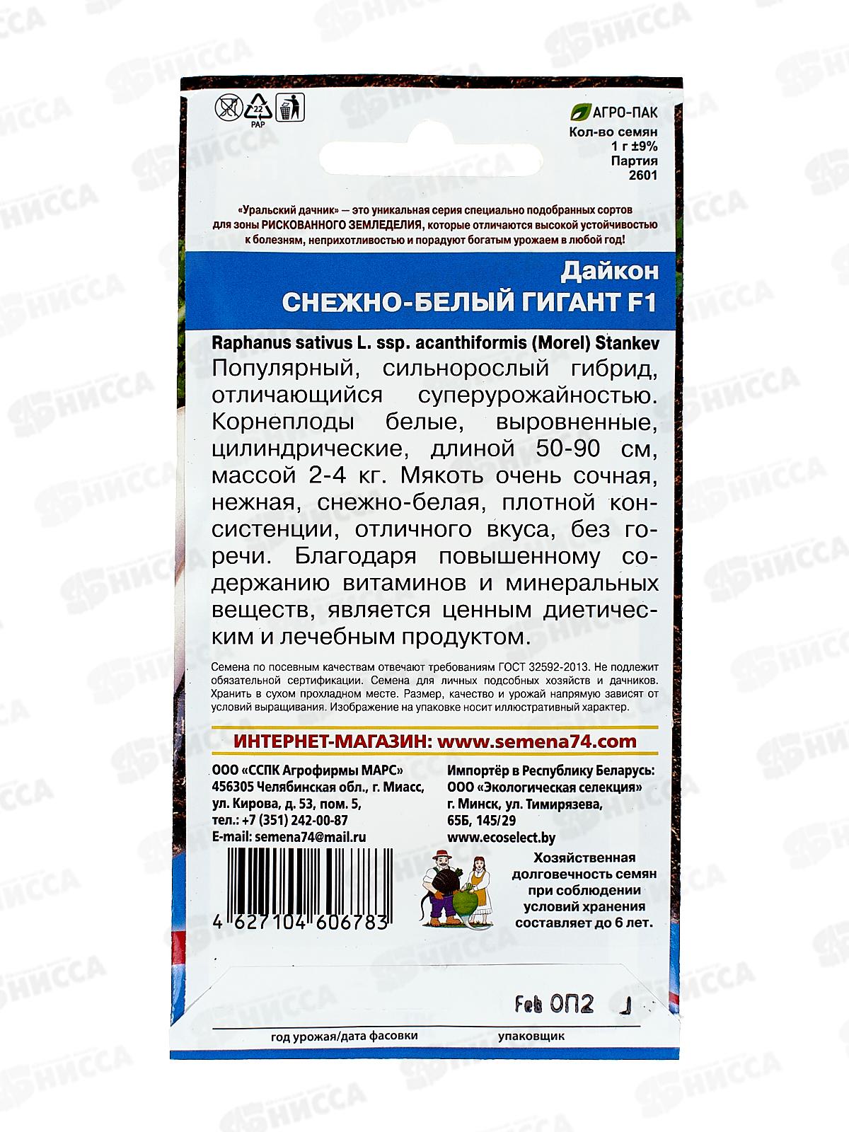 Дайкон Снежно-Белый Гигант F1 Евро *10 УрД +