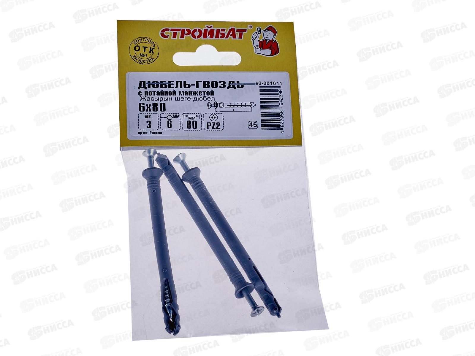 Дюбель-гвоздь потайной 6x80мм (3 шт), 061611