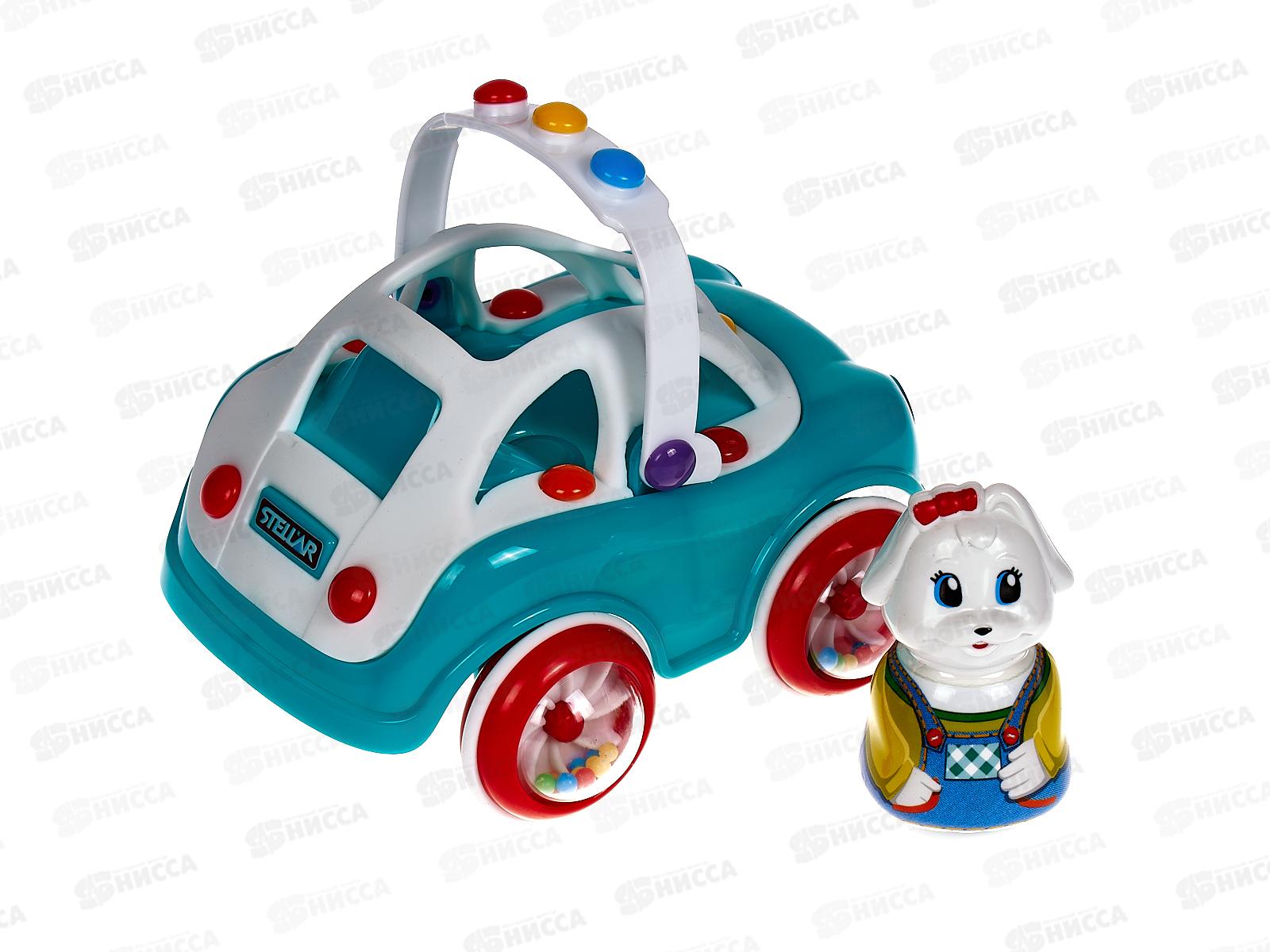 В кабине "Бусинки" сидит забавный пассажир, которого можно легко достать, с ним игра станет еще интересней и веселей. Колеса машинки наполнены маленькими разноцветными шариками, которые радужно пересыпаются и привлекают малыша приятным звучанием.