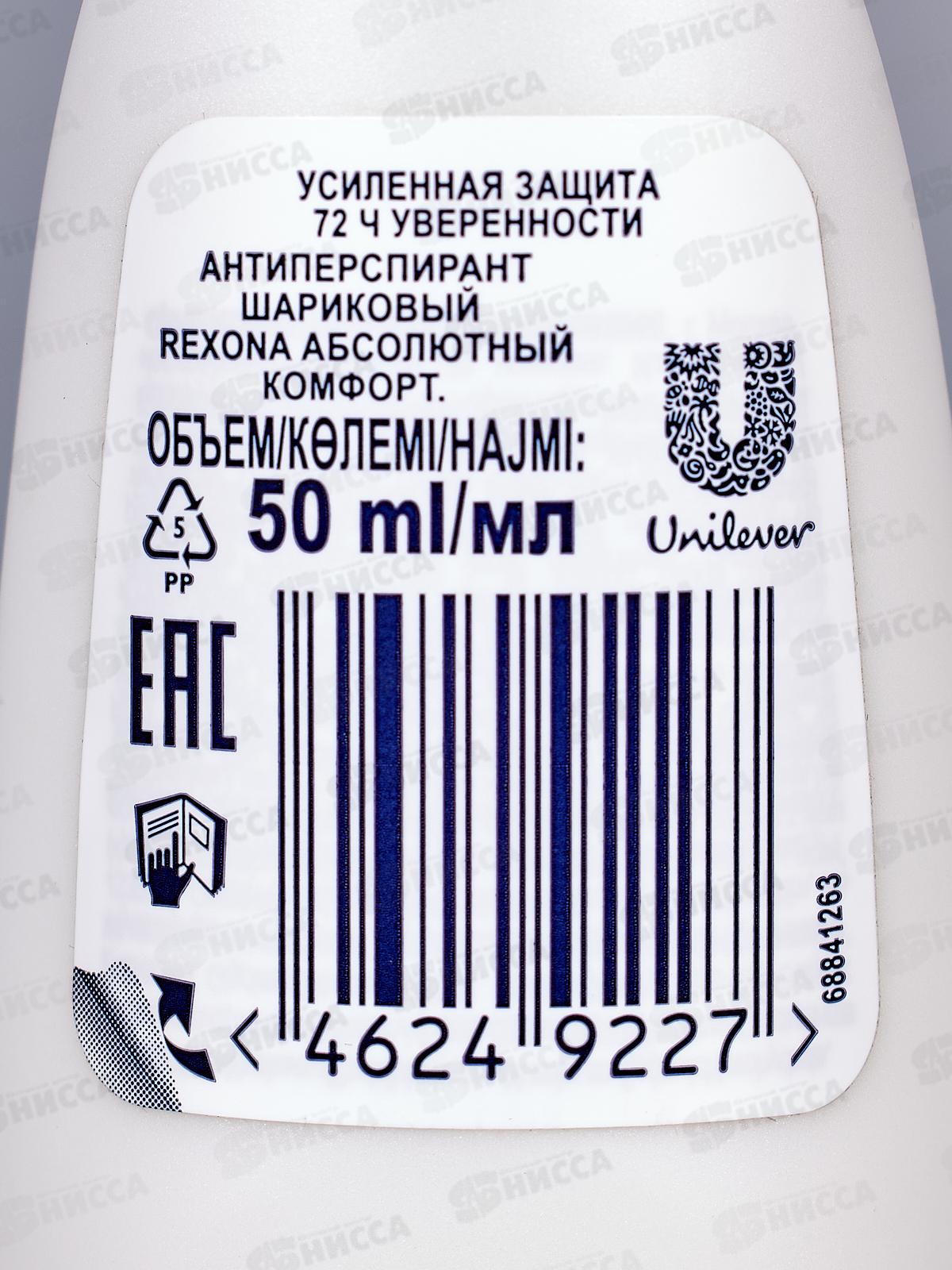РЕКСОНА дезодорант шариковый 50мл Абсолютный комфорт *6*24
