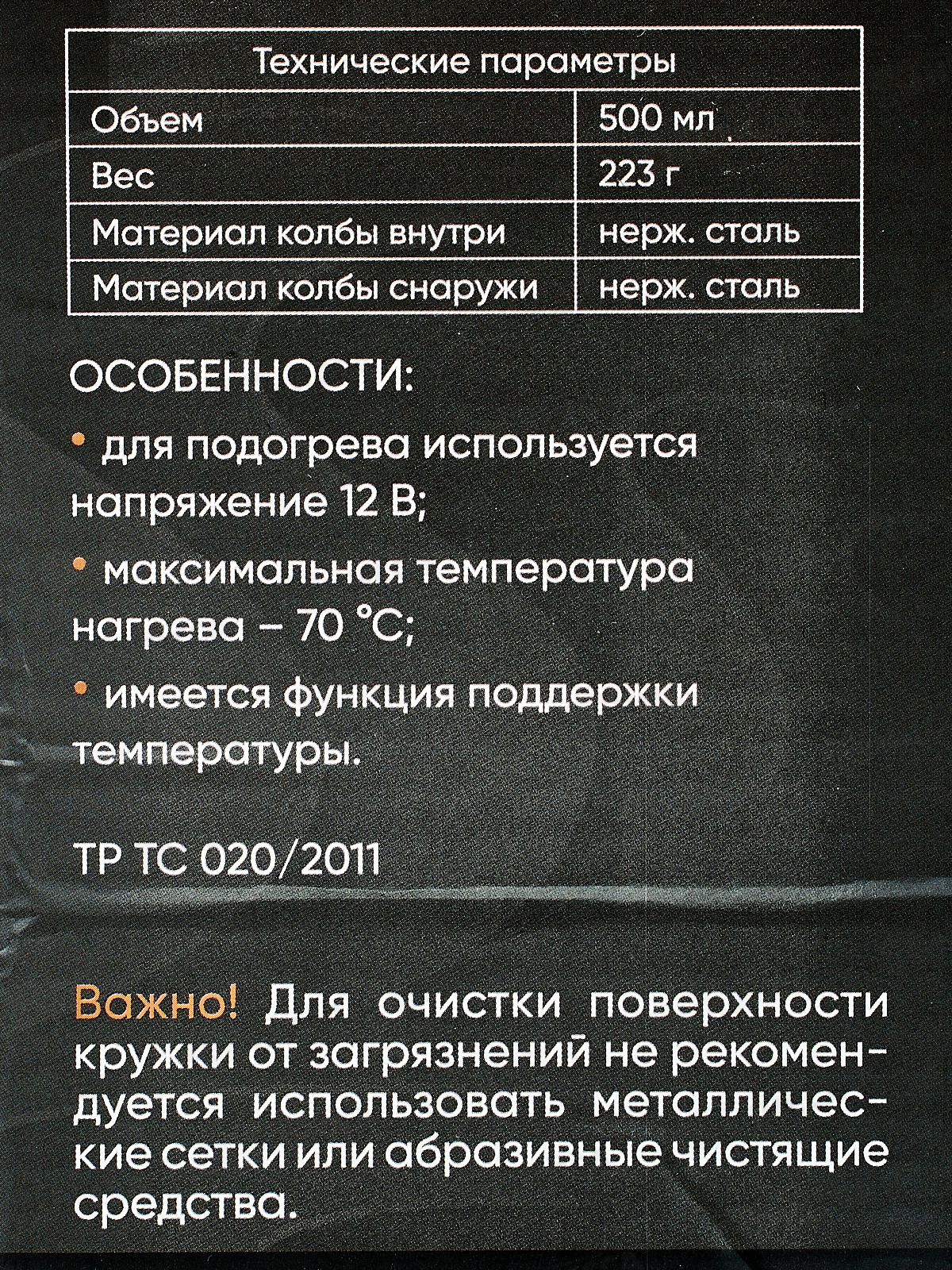 Автокружка "Следопыт" с подогревом от прикуривателя, металл. колба