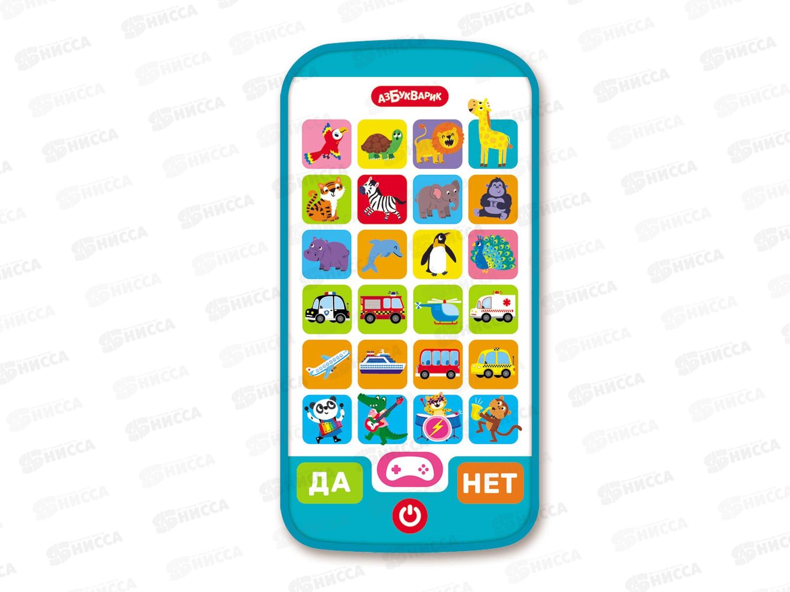 Смартфончик для любознательных малышей – с познавательными песенками и умными играми. Нажимая на кнопочки, ребенок познакомится с животными зоопарка и разными машинами (спасательными, городскими и т.д.), послушает о них 20 веселых песенок. А если выбрать игровой режим – смартфончик предложит 7 увлекательных игр: «Найди и покажи», «Угадай звук», «Весёлые загадки», «Да - нет», «Запомни - повтори», «Угадай песенку», «Суперигра». Всего в смартфончике собрано 120 вопросов и загадок.