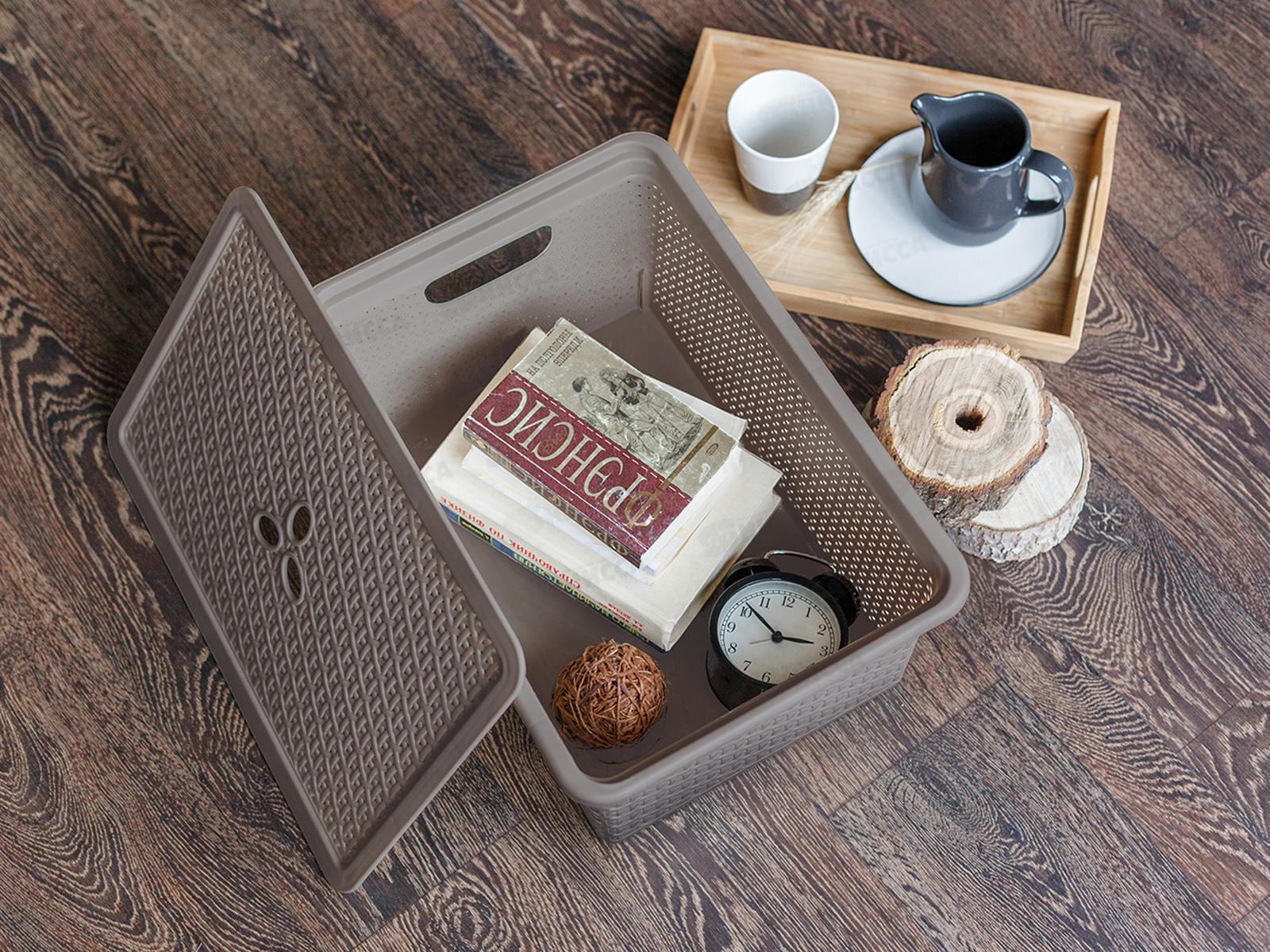 Корзинка плетеная Wenge 20 л с крышкой - лучшее решение для организации хранения домашних вещей. Её габариты 430х300х205 мм прекрасно подходят для умного хранения одежды и обуви, игрушек или овощей. Корзина станет неотъемлемой частью организации пространства в шкафу, на кухне или в прихожей. Крышка легко снимается. Ее боковые стенки имитируют плетение ротанг, создавая маленький уголок природы в вашем доме. Эта корзинка входит в коллекцию Wenge, что позволяет подобрать различные предметы для вашего дома в едином стиле. Производится из безопасного перерабатываемого полипропилена, который не содержит бисфенола А.