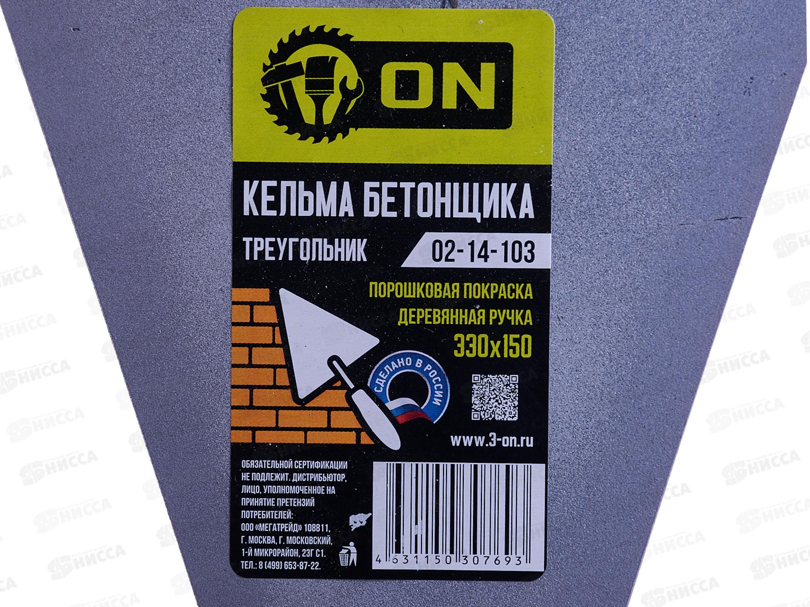 Кельма бетонщика (треугольник) порошковая окраска, усиленная деревянная ручка, метал.колпачок, 330*150мм, ON