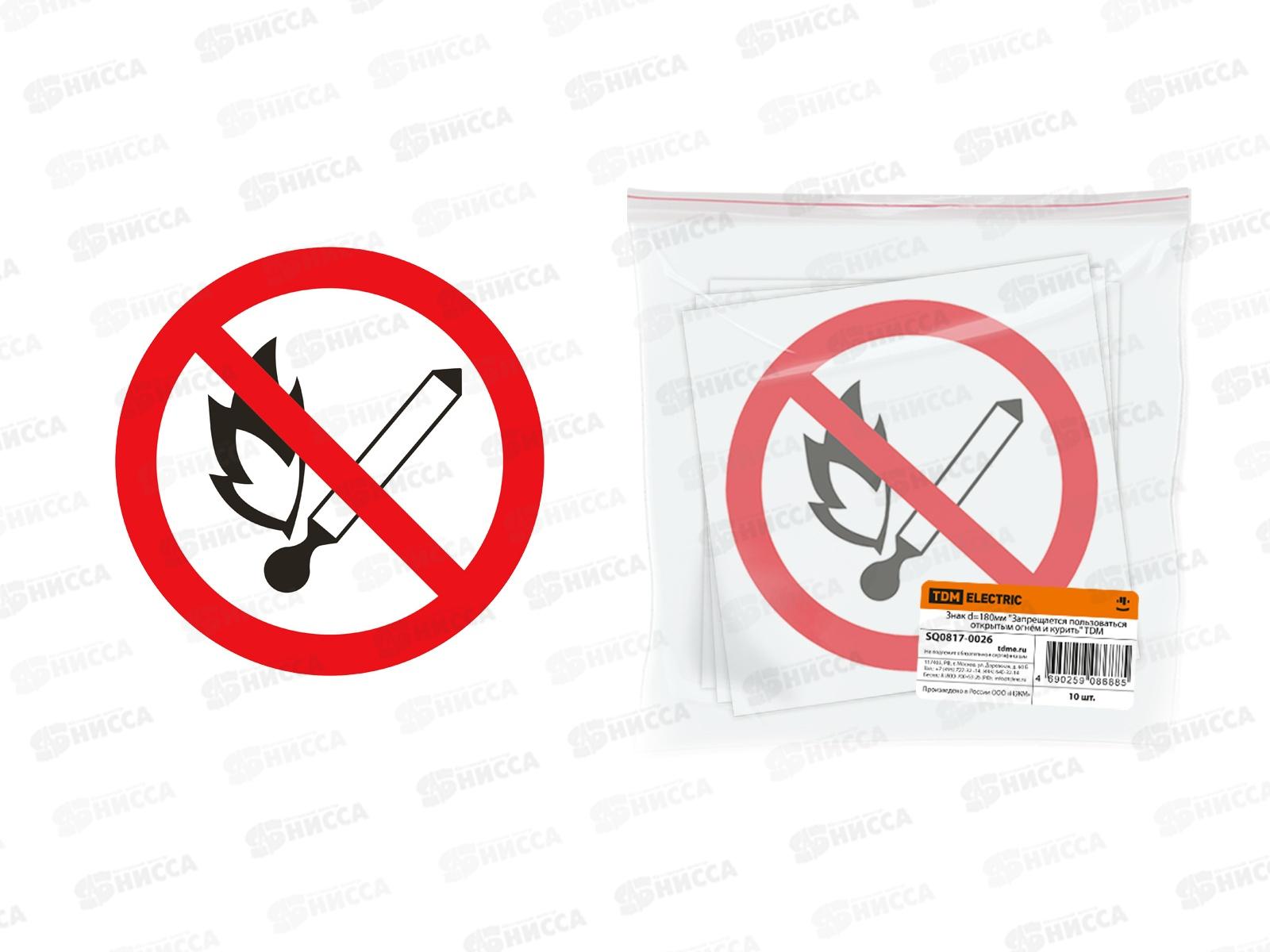 Знак d180мм "Запрещается пользоваться открытым огнём и курить" TDM
