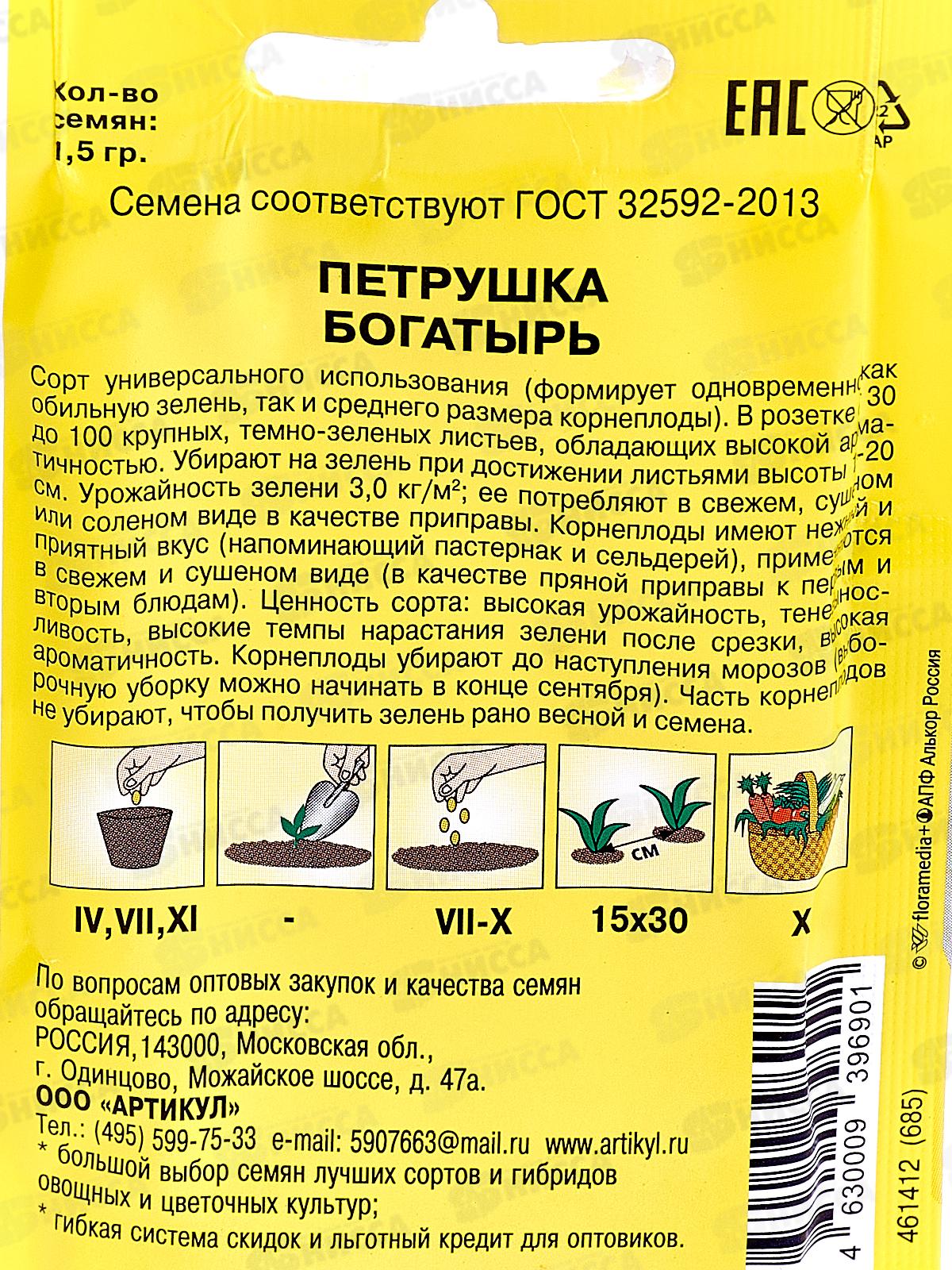 Петрушка Богатырь 1,5г лам/п *10 АРТ +