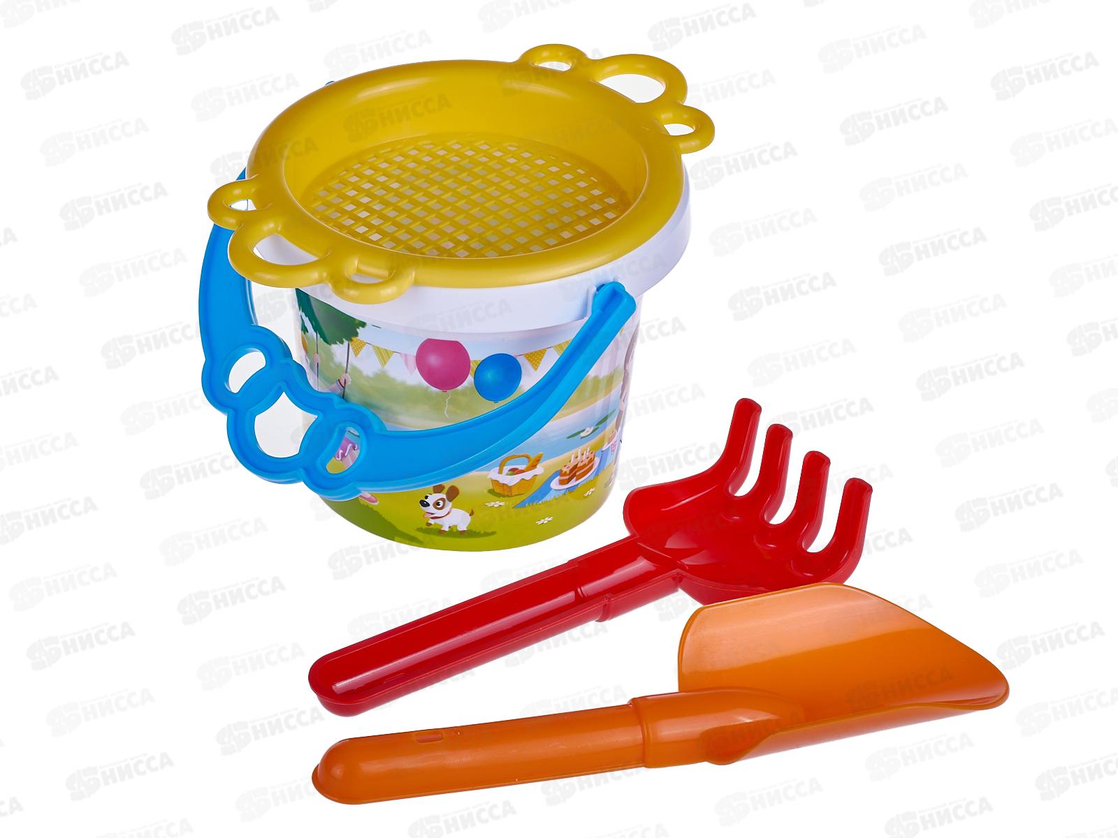 Набор песочный №154, 01854 (ведро 0,8л, сито, совок 19см, грабли 19см) *26