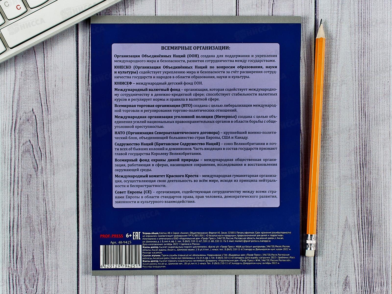 Тетрадь 48листов клетка ПП "АНИМЕ" Обществознание, 48-9425 *10/80