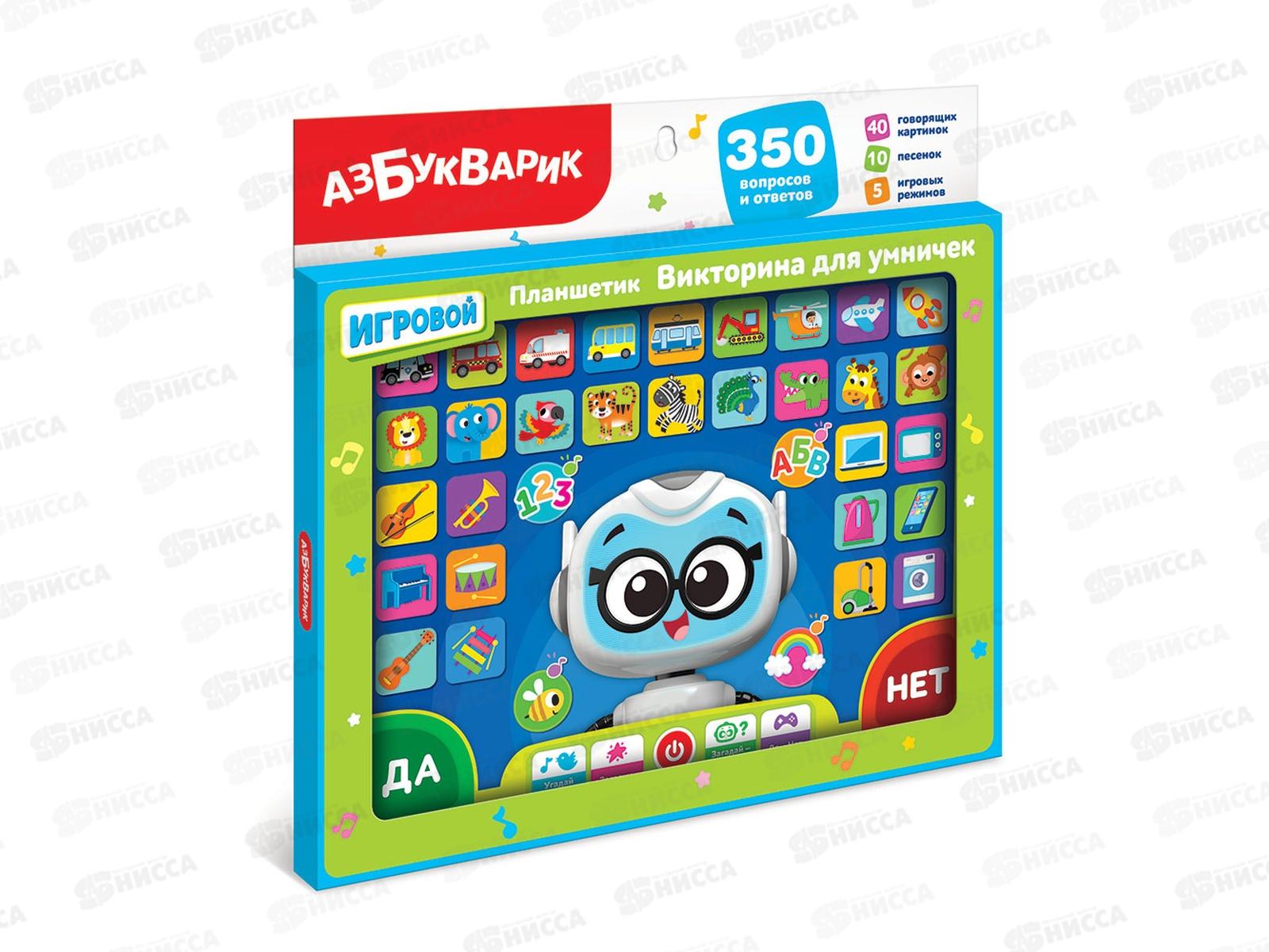 Ваш малыш – любознательный почемучка? Тогда интерактивный планшетик «Викторина для умничек» станет для него отличным подарком! В нем собрано 350 вопросов и ответов по самым разным темам: животные, машины, музыкальные инструменты и электронные приборы. Главный герой – умный робот Робби – станет для ребенка настоящим другом и отличным товарищем для игр!
