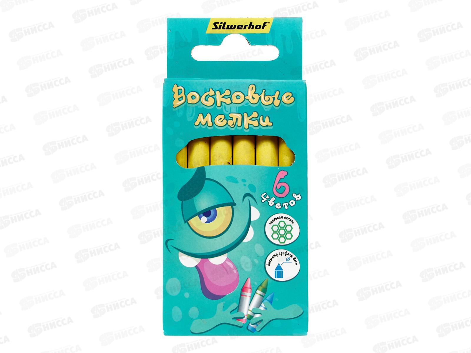 Мелки восковые SILWERHOF Монстрики круглые 6 цветов (89мм) картонная упаковка 1830301*8