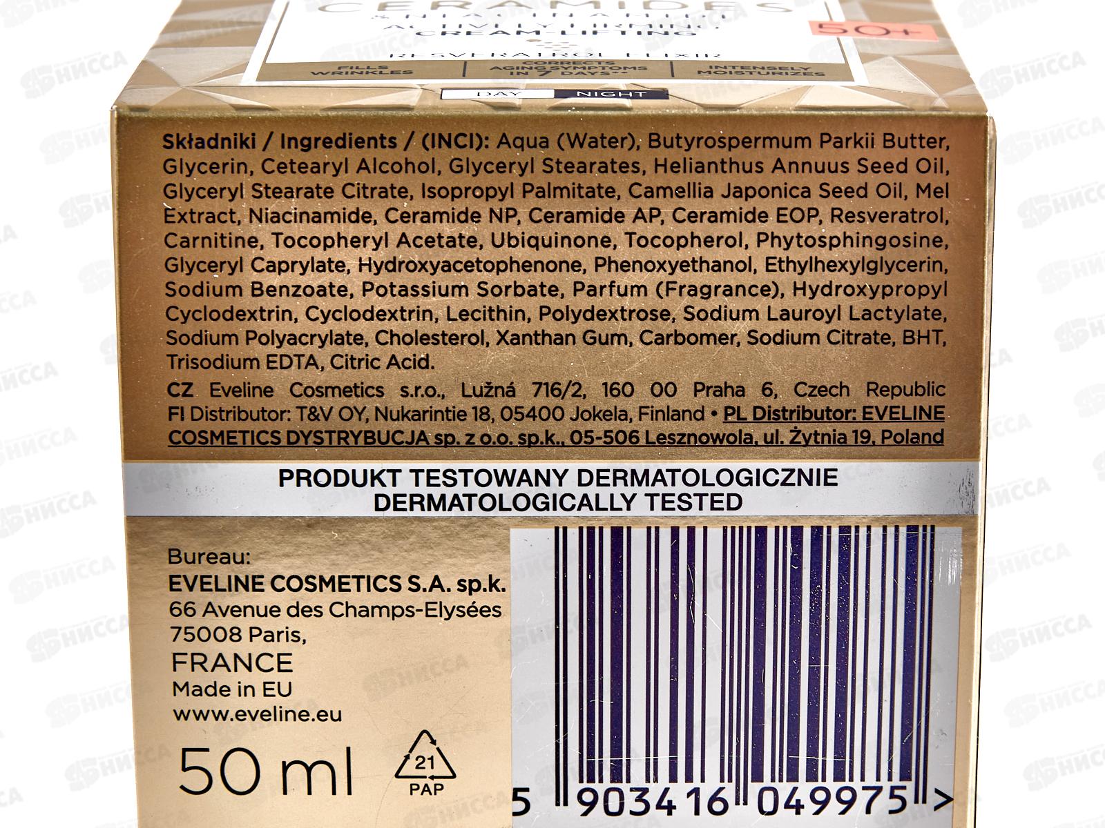 Революционная формула активного укрепляющего крема-лифтинга основана на действии 3-х биосовместимых керамидов, которые в течение 7 дней устраняют признаки старения, появляющиеся после 50 лет. Состав: Aqua (Water), Butyrospermum Parkii Butter, Glycerin, Cetearyl Alcohol, Glyceryl Stearates, Helianthus Annuus Seed Oil, Glyceryl Stearate Citrate, Isopropyl Palmitate, Camellia Japonica Seed Oil, Mel Extractm Niacinamide, Ceramide NP, Ceramide AP, Ceramide EOP, Resveratrol, Carnitine, Tocopheryl Acetate, Ubiquinone, Tocopherol, Phytosphingosine, Glyceryl Caprylate, Hydroxyacetophenone, Phenoxyethanol, Ethylhexylglycerin, Sodium Benzoate, Potassium Sorbate, Parfum (Fragrance), Hydroxypropyl Cyclodextrin, Cyclodextrin, Lecithin, Polydextrose, Sodium Lauroyl Lactylate, Sodium Polyacrylate, Cholesterol, Xanthan Gum, Carbomer, Sodium Citrate, BHT, Trisodium EDTA, Citric Acid.