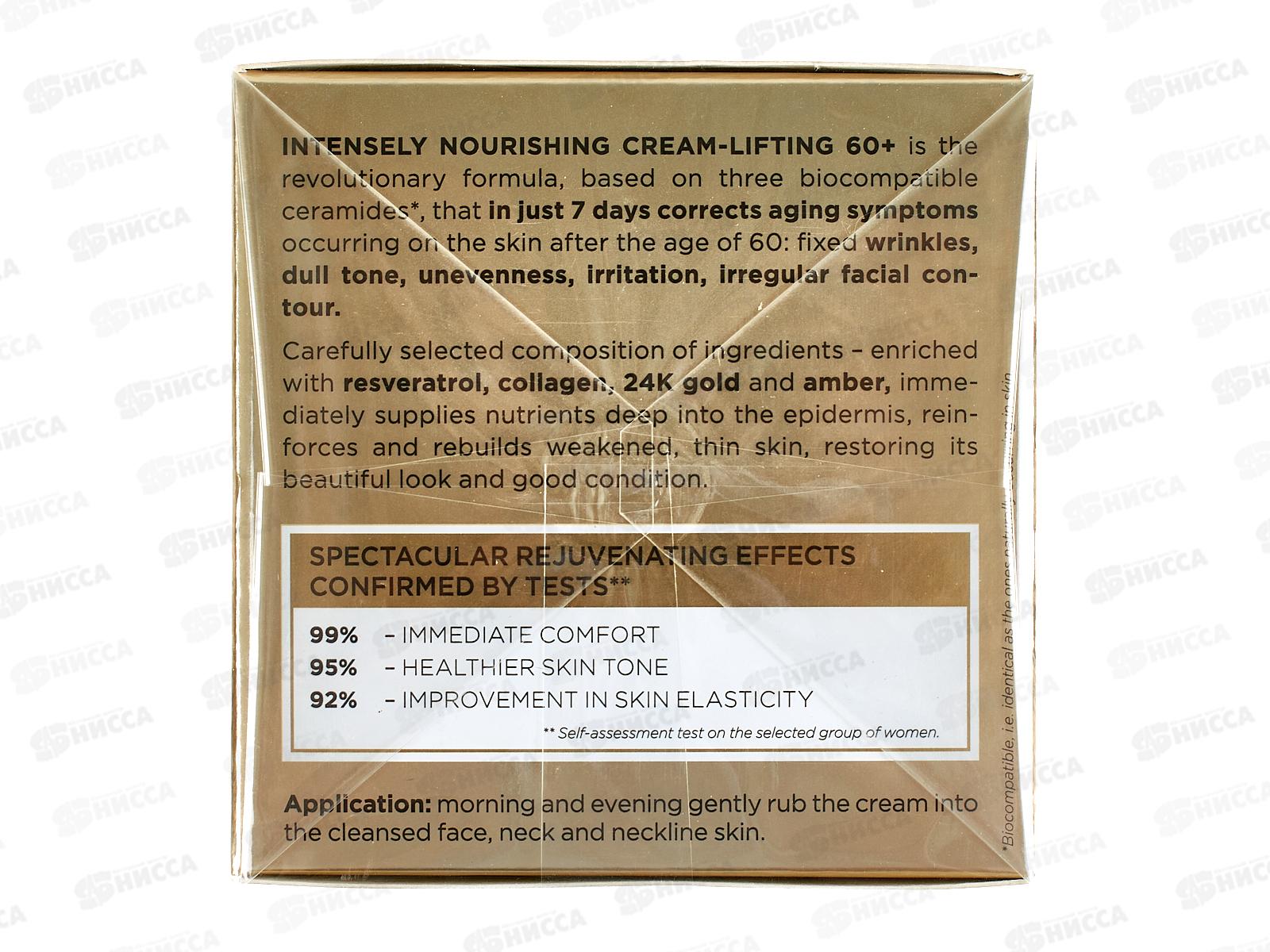 Революционная формула интенсивно питательного крема-лифтинга основана на действии 3-х биосовместимых керамидов, которые в течение 7 дней устраняют признаки старения, появляющиеся после 60 лет. Состав: Aqua (Water), Butyrospermum Parkii Butter, Glycerin, Cetearyl Alcohol, Glyceryl Stearates, Helianthus Annuus Seed Oil, Glyceryl Stearate Citrate, Isopropyl Palmitate, Macadamia Ternifolia Seed Oil, Olus Oil, Amber Extract, Collagen, Gold, Ceramide NP, Ceramide AP, Ceramide EOP, Resveratrol, Hydrolyzed Elastin, Tocopheryl Acetate, Phytosphingosine, Glyceryl Caprylate, Hydroxyacetophenone, Phenoxyethanol, Ethylhexylglycerin, Parfum (Fragrance), Propylene Glycol, Hydroxypropyl Cyclodextrin, Cyclodextrin, Polydextrose, Sodium Lauroyl Lactylate, Sodium Polyacrylate, Cholesterol, Xanthan Gum, Carbomer, BHT, Acetyl Cedrene, Hexamethylindanopyran, Linalyl Acetate, Tetramethyl Acetyloctahydronaphthalenes.