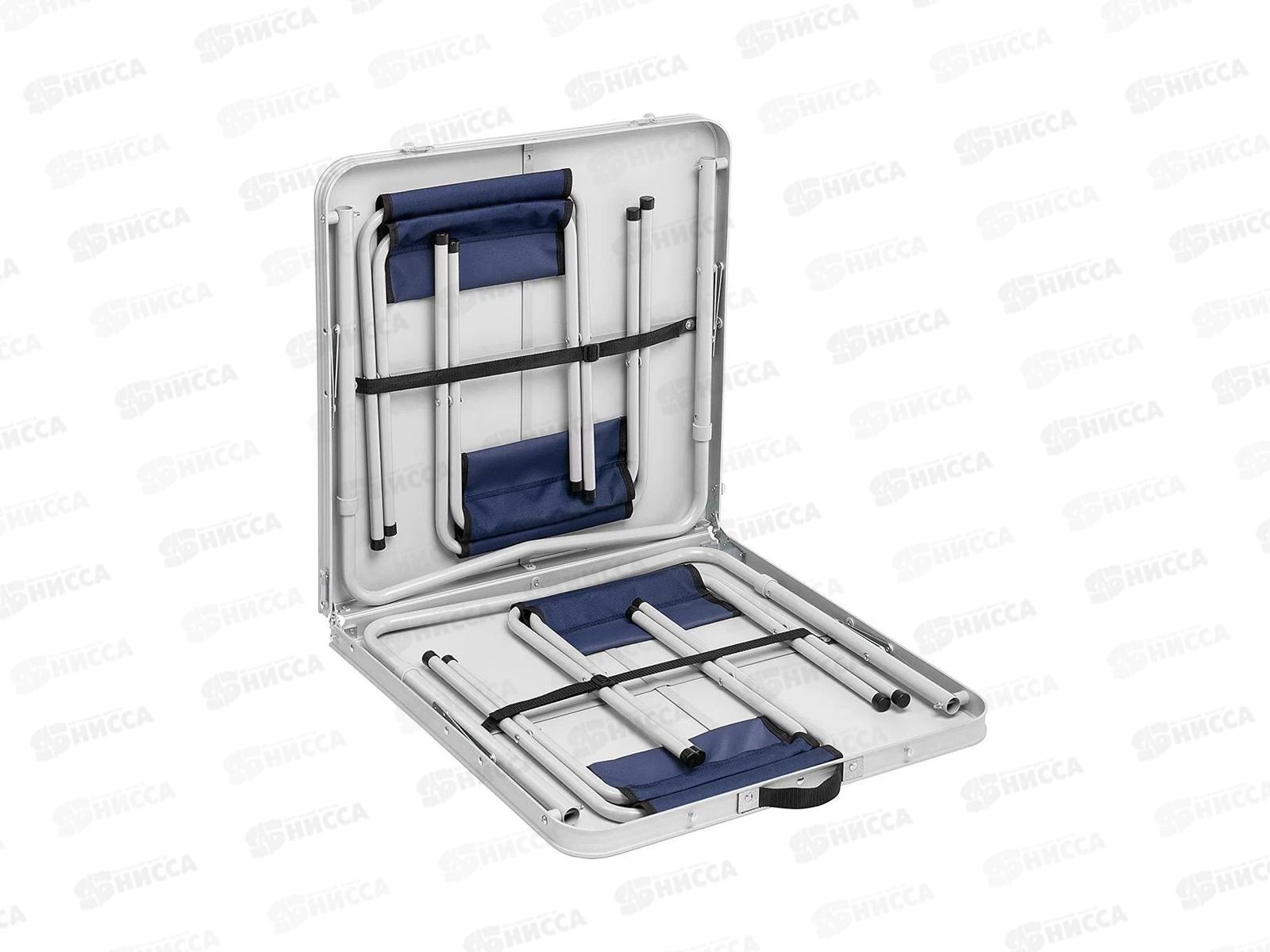 Набор мебели Premier fishing состоит из стола и 4 табуретов. Конструкция стола легко раскладывается и складывается, а также обеспечивает удобство переноски и перевозки. Табуреты для транспортировки упаковываются внутрь стола. Чехол транспортировочный с застежкой на ленте Velcro в комплекте. Стол размером 120х60 см имеет алюминиевый каркас, столешница изготовлена из ХДФ, покрыта влагозащитным покрытием. Стол можно устанавливать на две высоты: с надставными ножками и без них. Каркас табуретов выполнен из стальной трубы.