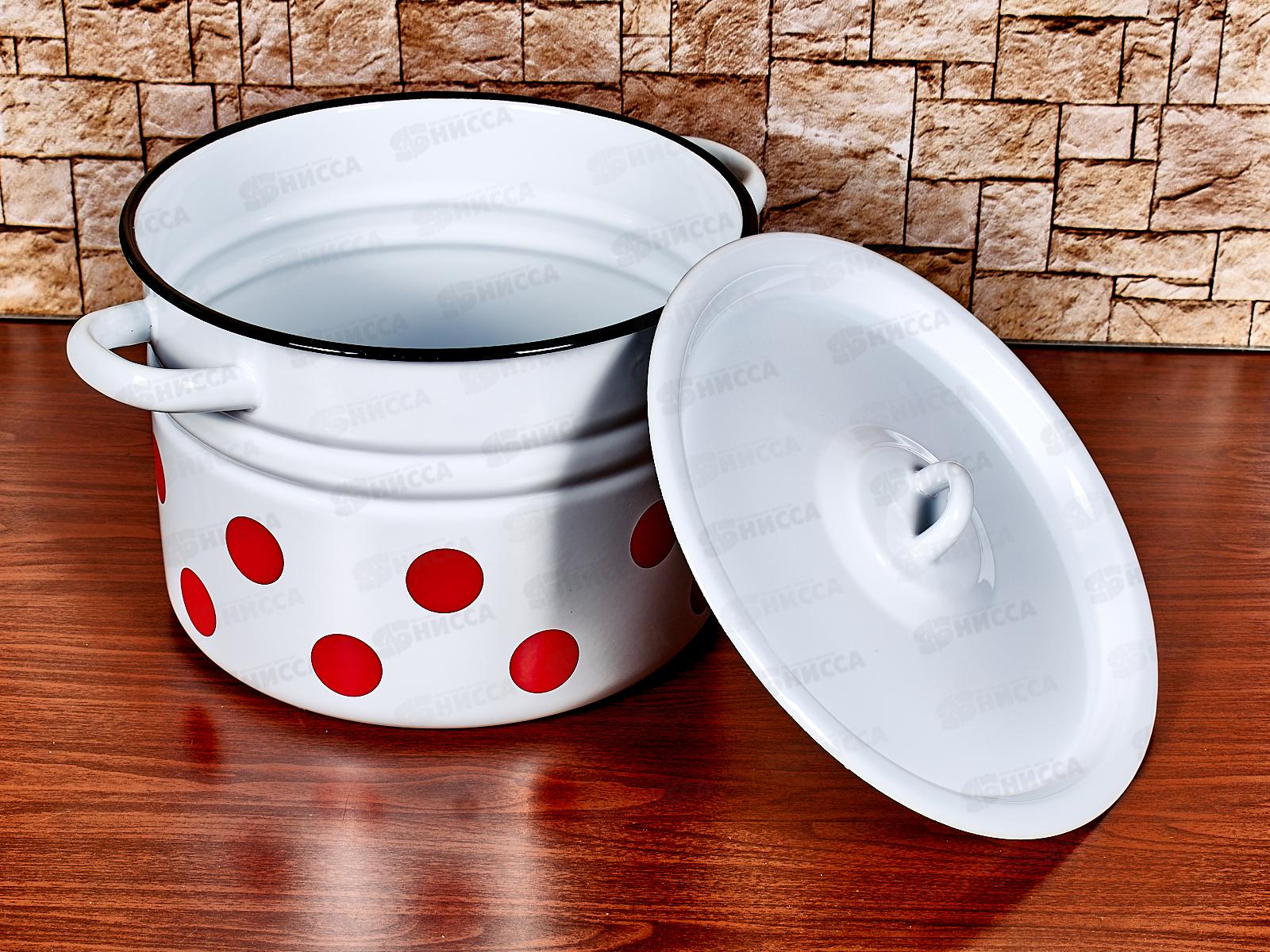 Кастрюля 8,0л цилиндрическая Красный горох с петлей С1620*79