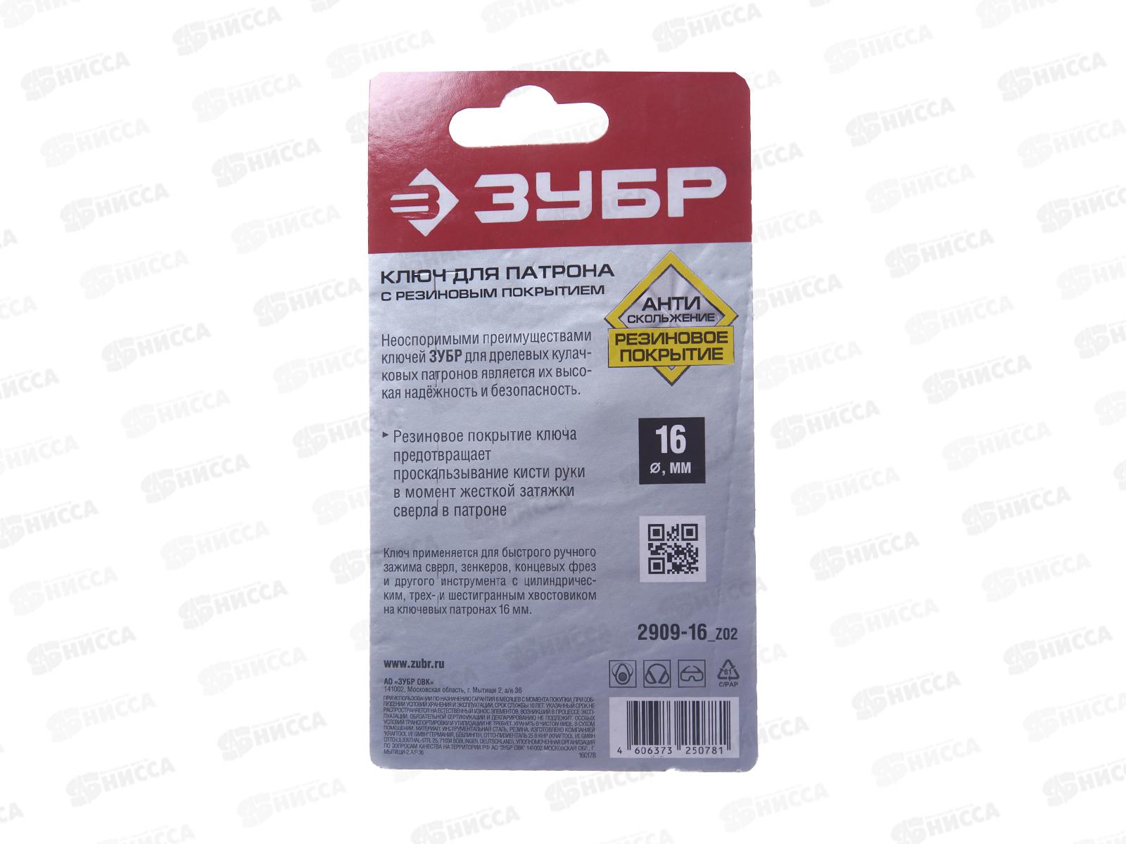 Ключ для патрона дрели 16мм с резиновым покрытием, 2909-16