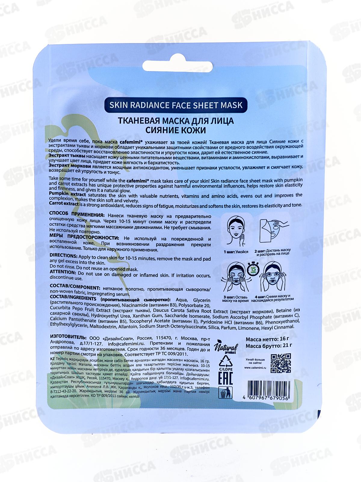 Кафе Мими Тканевая маска для лица Сияние кожи 21г 573124 *12