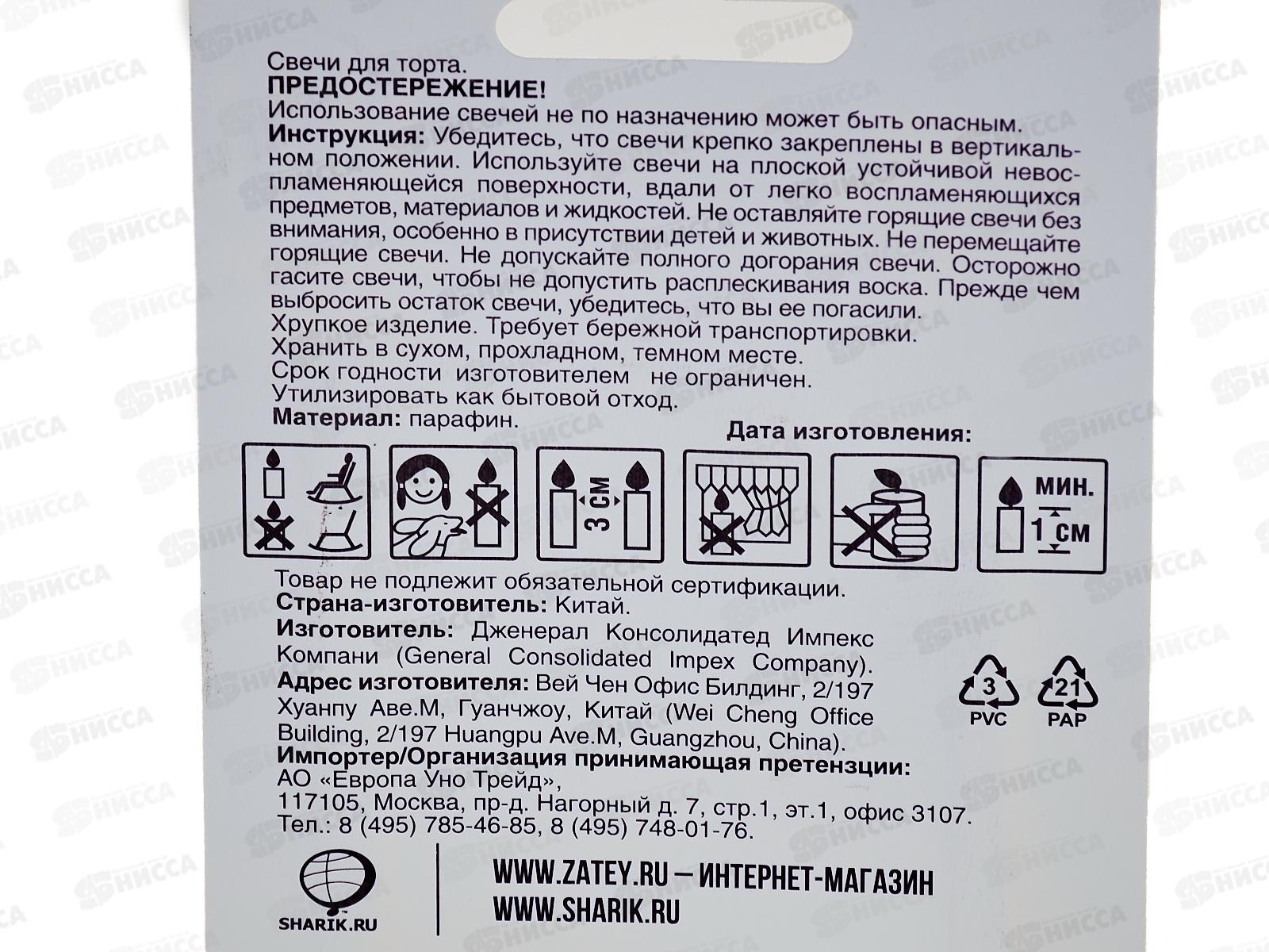 Свечи для торта Серебро 6см 10шт/G, 1502-6171