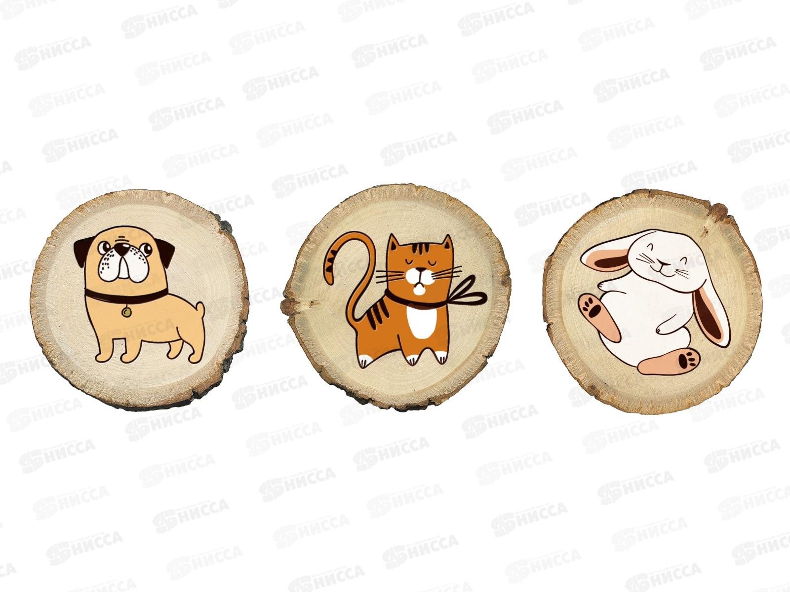 Выжигание на спилах "Зайка, Песик, Киса" (спил малый) 04801