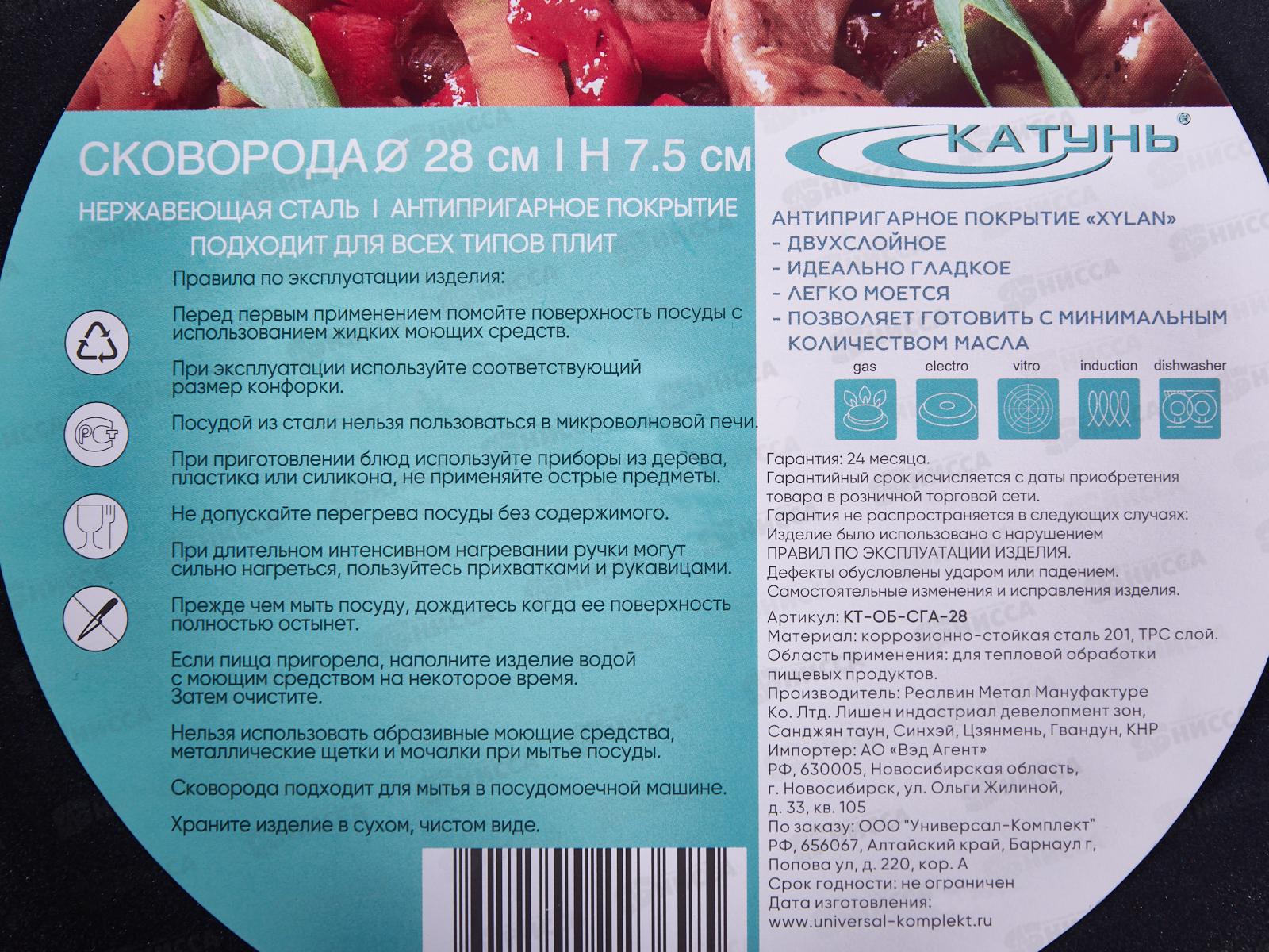 Сковорода 28см без крышки (общепит) глубокая КТ-ОБ-СГА-28