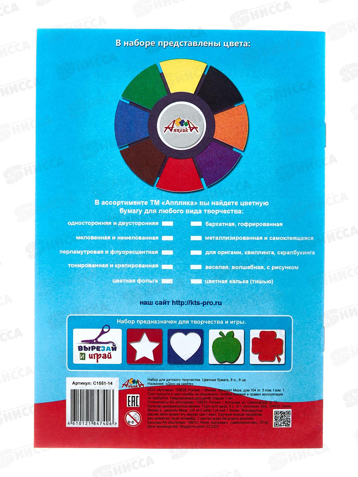 Цветная бумага 8л 8цв,Апплика Дино на скейте,С1551-14*60