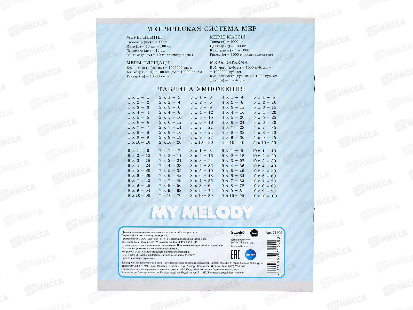 Тетрадь 18листов клетка CENTRUM Kuromi 71608*25/150