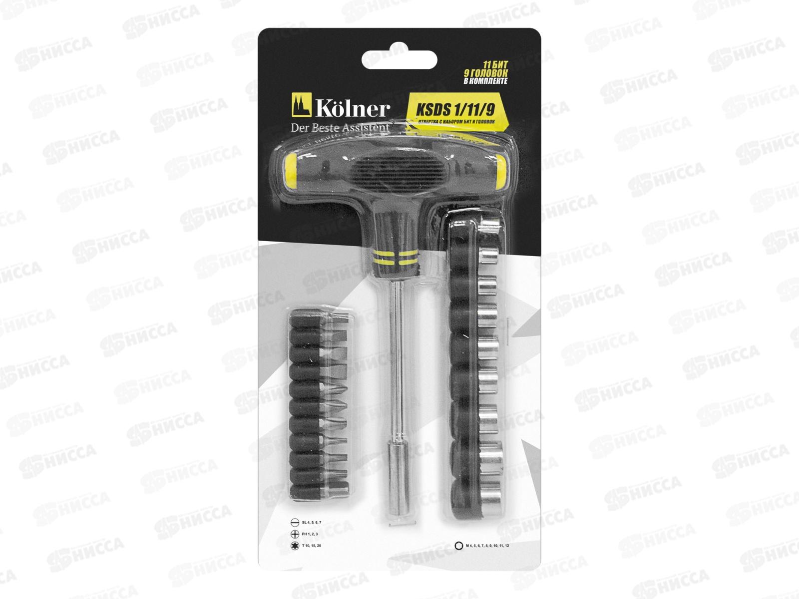Отвертка с набором бит и головок Т-образная Kolner KSDS 1/11/9