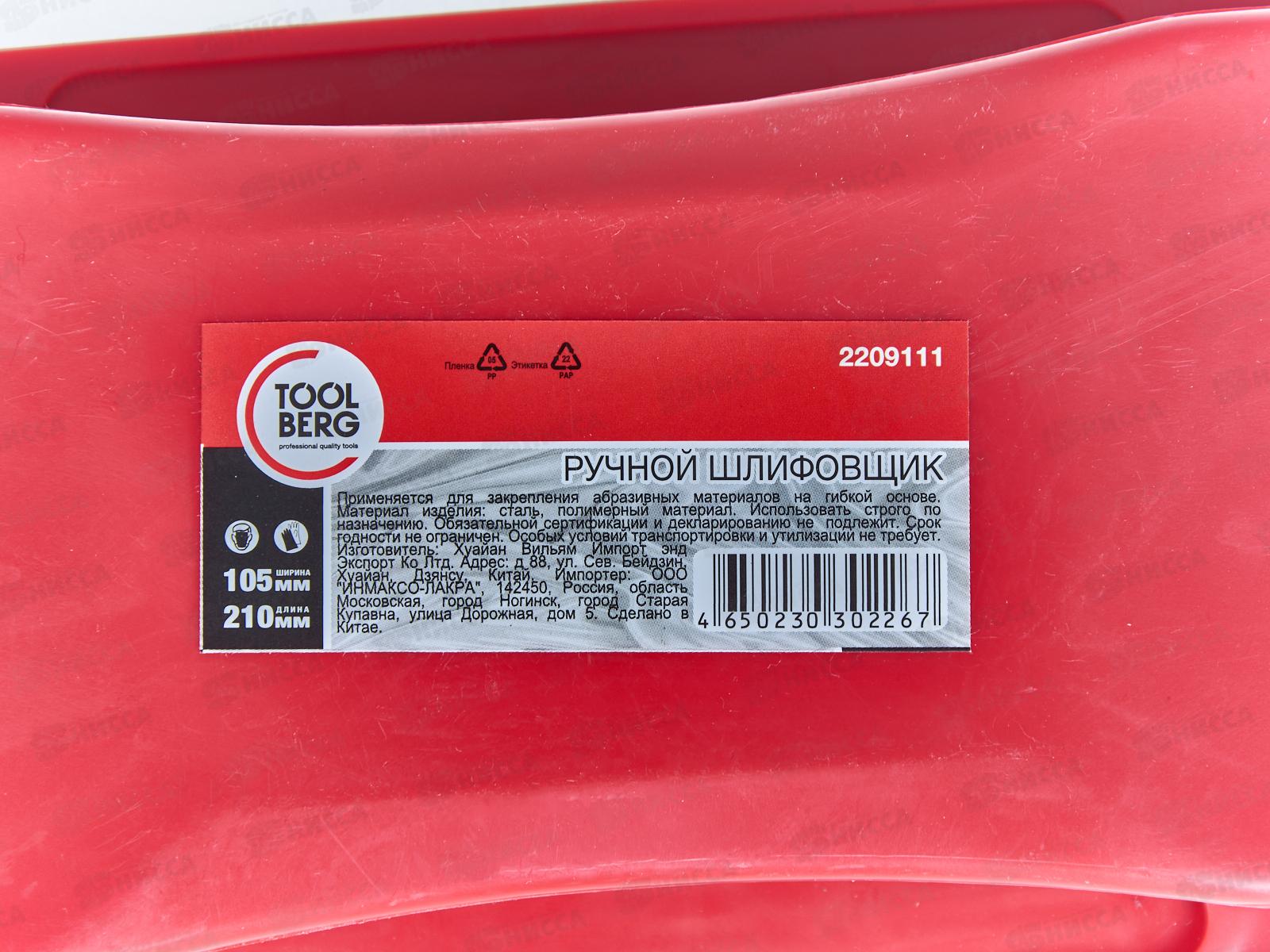 Шлифовщик ручной с ручкой 210*105мм 2209111 *30 Л