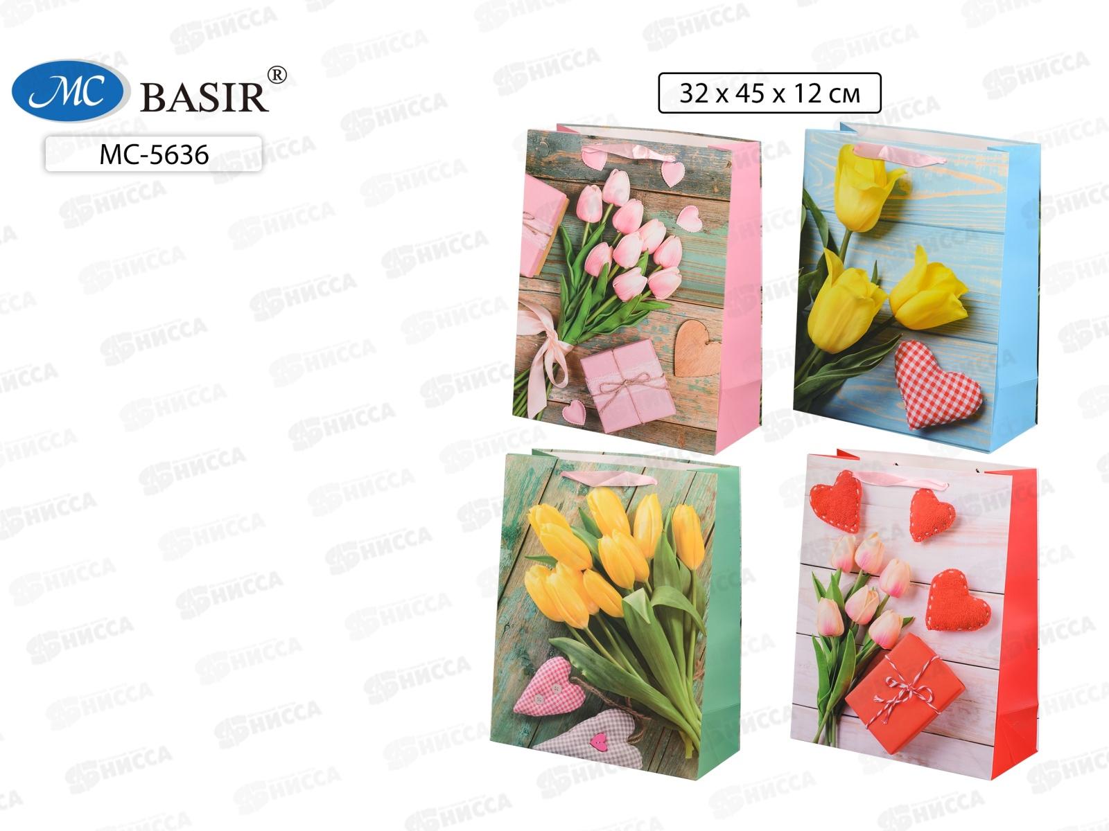 Пакет подарочный бумажный, 32*45*12см, Тюльпаны МС-5636 *20