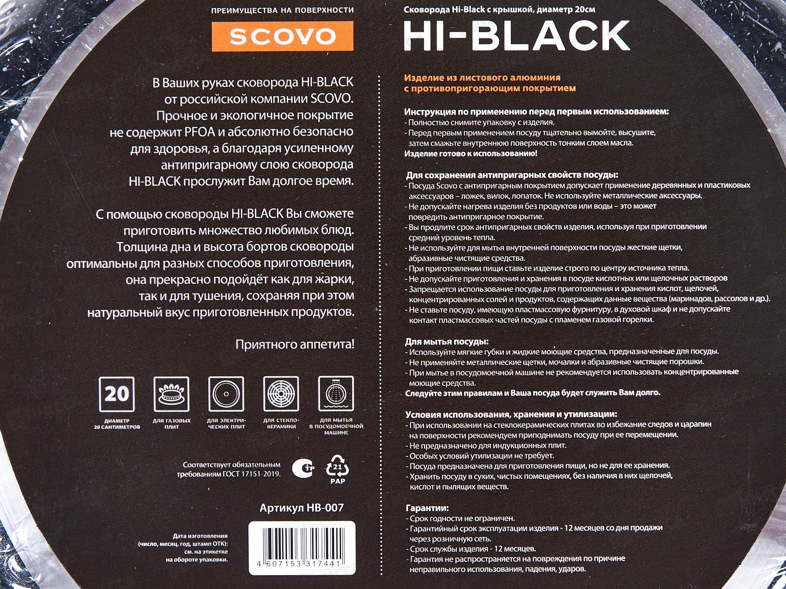 Сковорода Hi-Black d200 стеклянная крышка HB-007