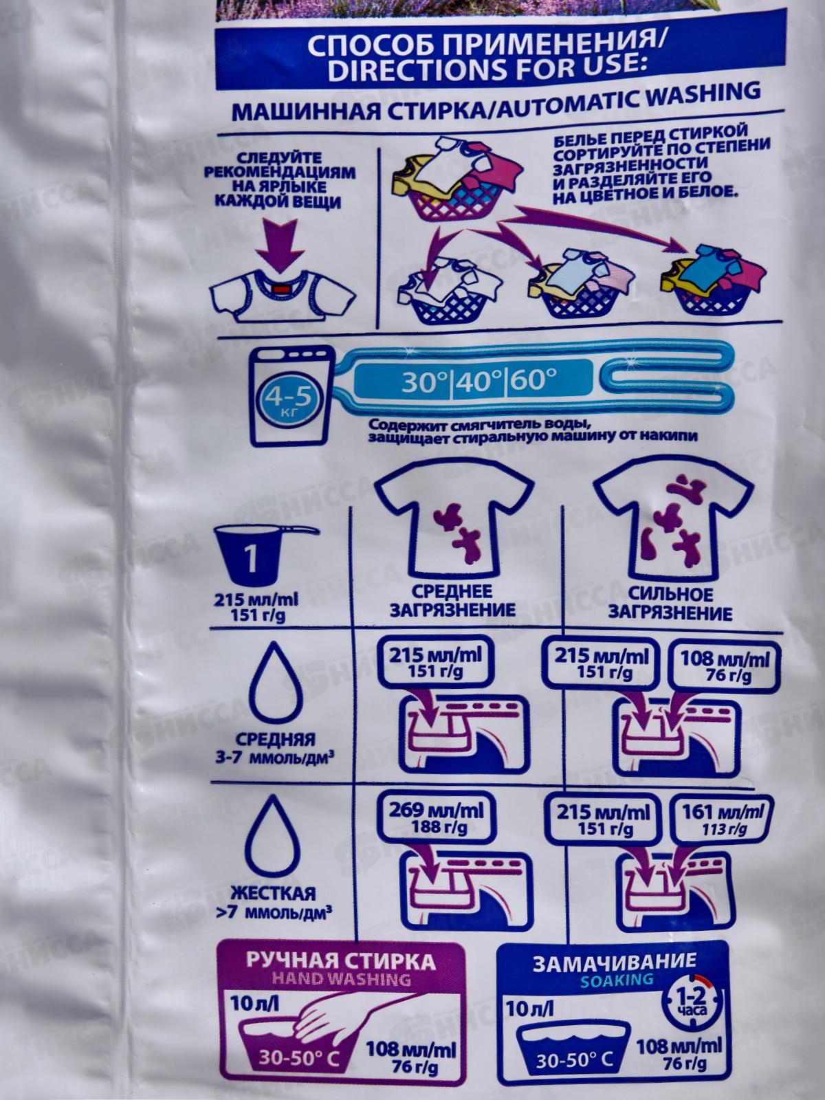 Состав: менее 5%: анионные ПАВ, неионогенные ПАВ, мыло (соли жирных кислот), поликарбоксилаты, фосфонаты, энзимы, ароматизирующая добавка.