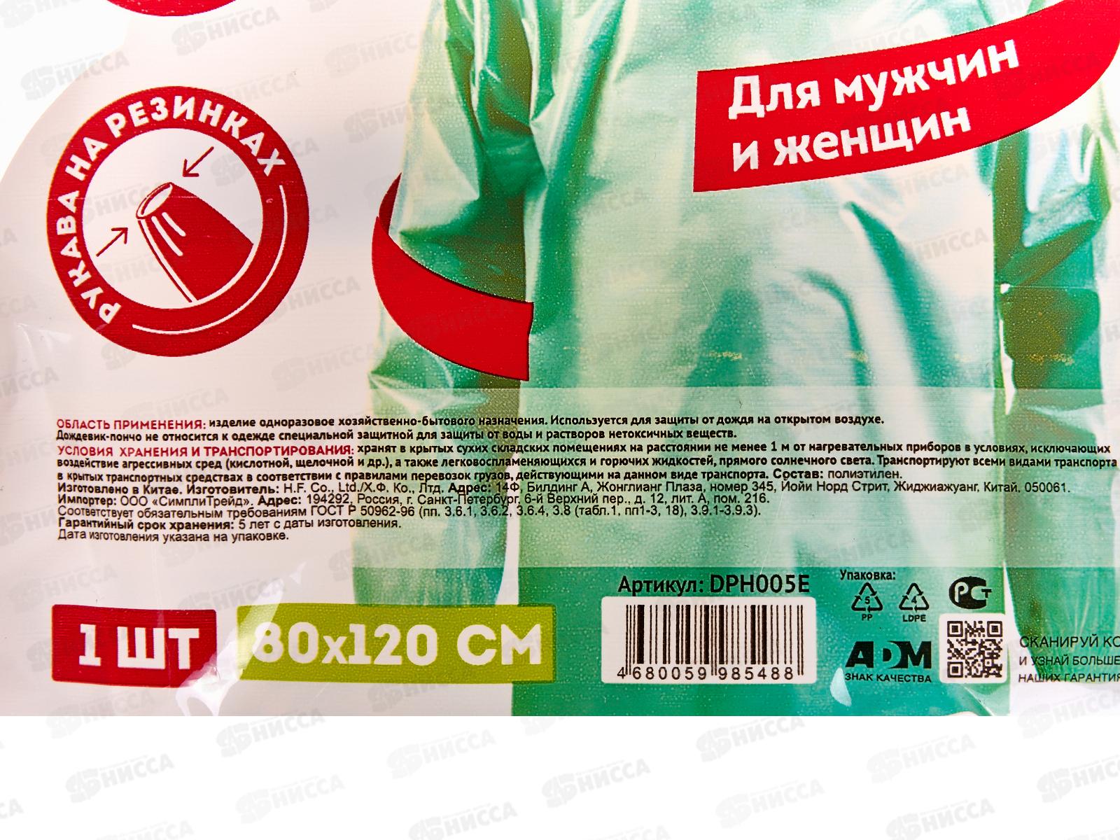 Дождевик-пончо DPH005E с рукавами зеленый *100 305