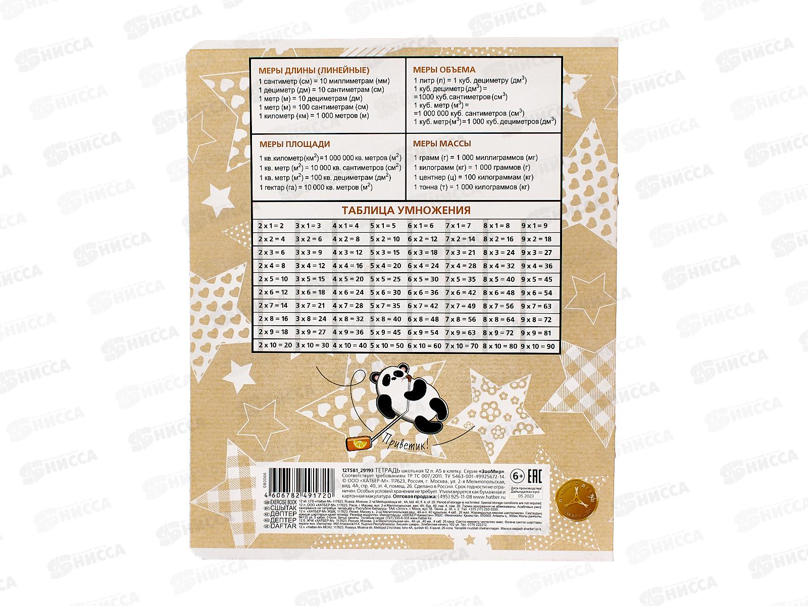 Тетрадь 12листов клетка Hatber ЗооМир 080066*10/140