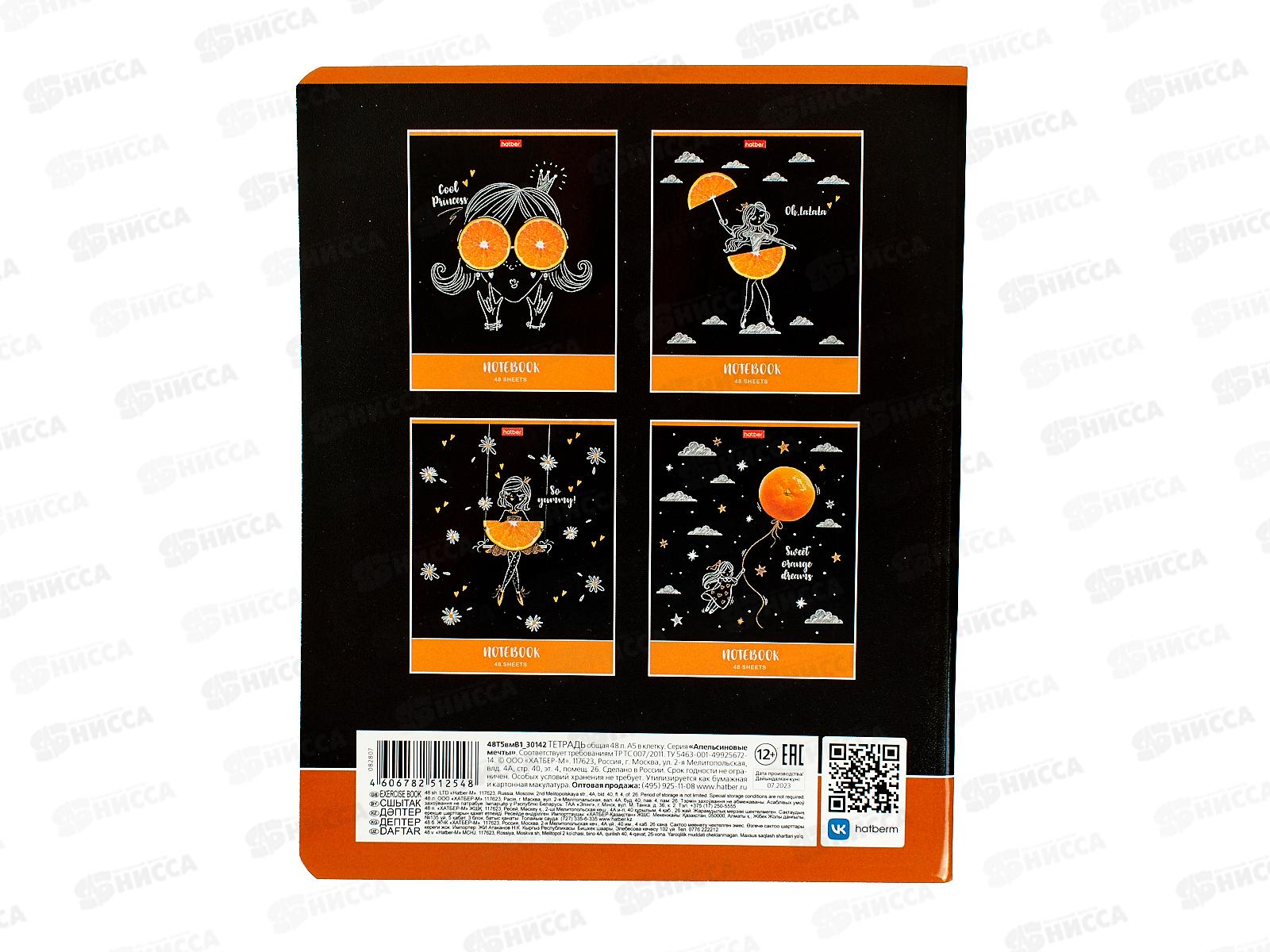 Тетрадь 48листов клетка Hatber Апельсиновые мечты 082807*10/100