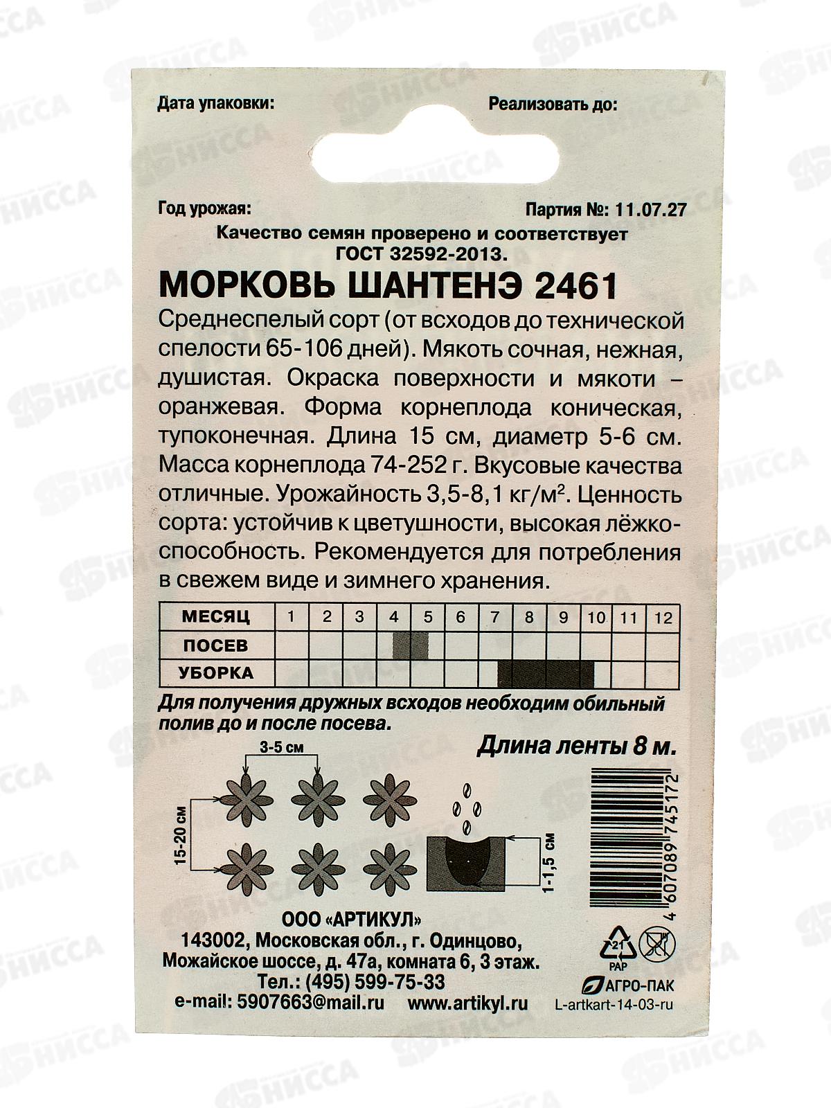 Морковь Шантенэ 2461 1,5г лента 8м *10 АРТ +