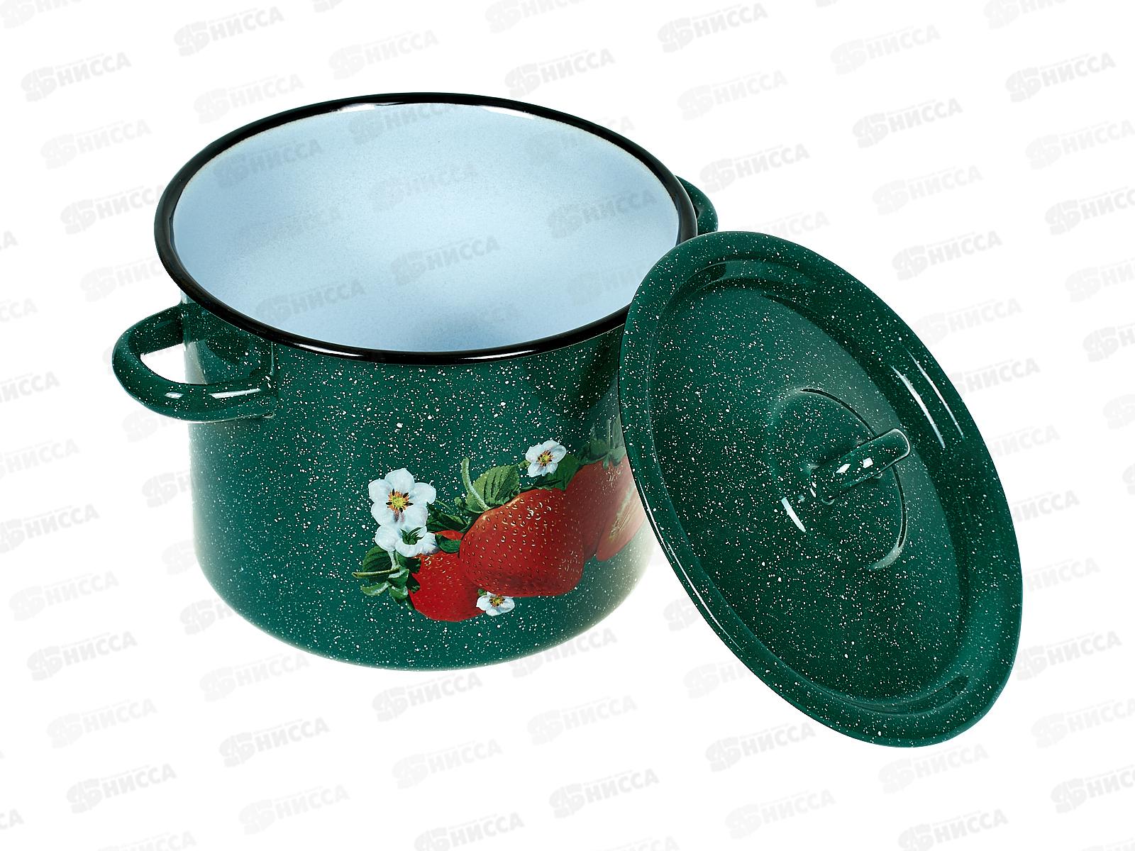 Кастрюля 3,5л цилиндрическая Клубника садовая, зеленый рябчик с петлей С1612.з*59