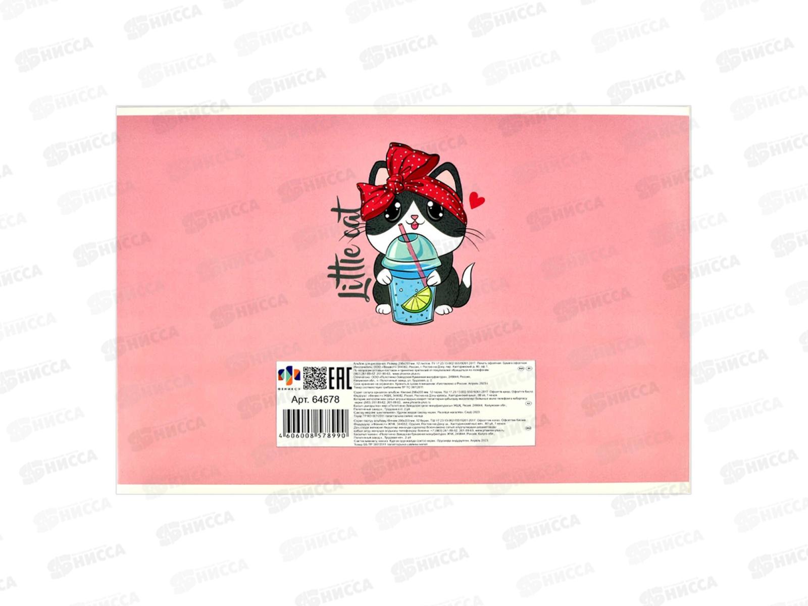 Альбом для рисования 12л ФЕН Модная кошка,64678*50