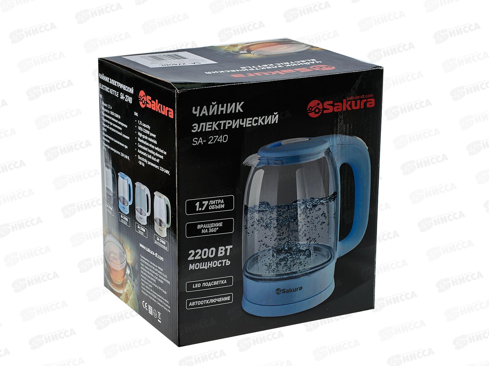 Чайник электрический SA-2740BL 1,7л стекло подсветка
