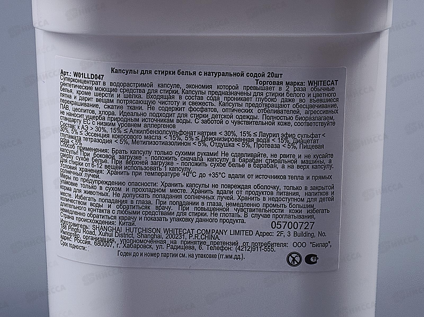 Whitecat Soda Капсулы для стирки на основе Натуральной соды 20шт *18