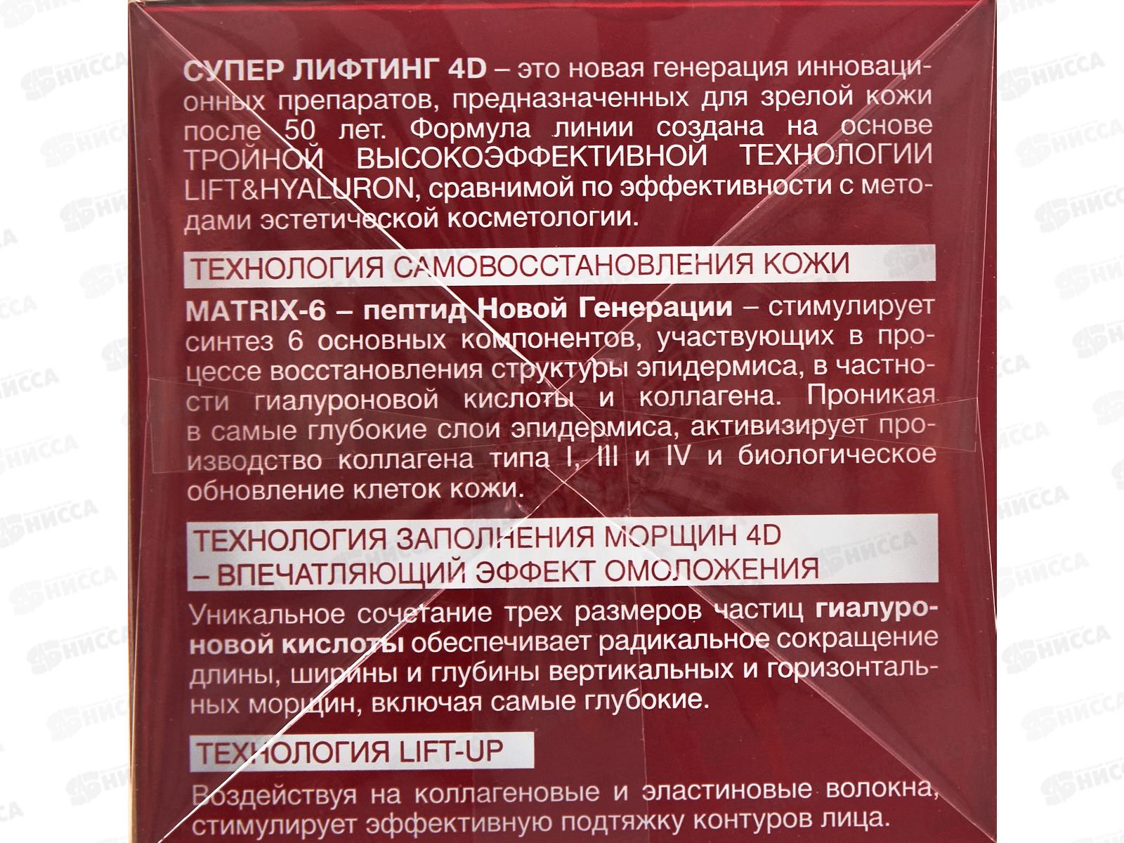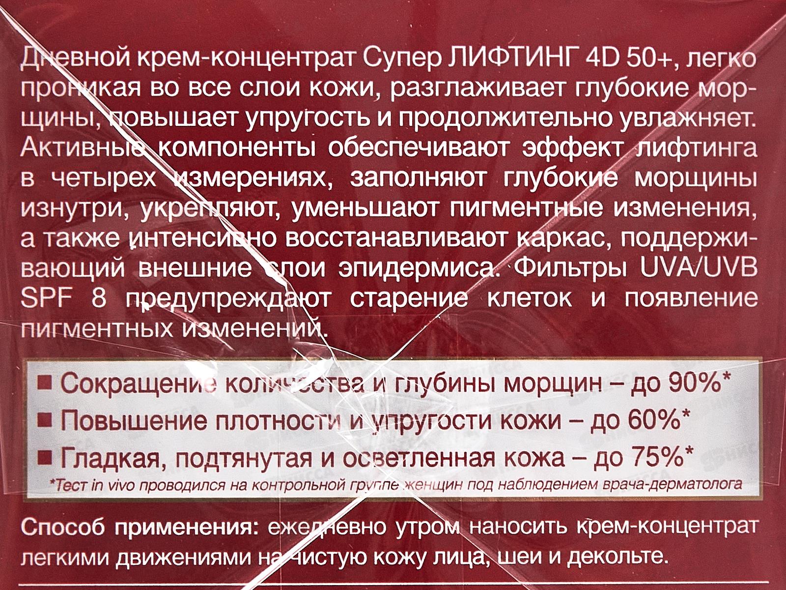 ЭВЕЛИН Супер Лифтинг 4D Днев крем-конц прот глуб морщ SPF8 50+ 50мл *30