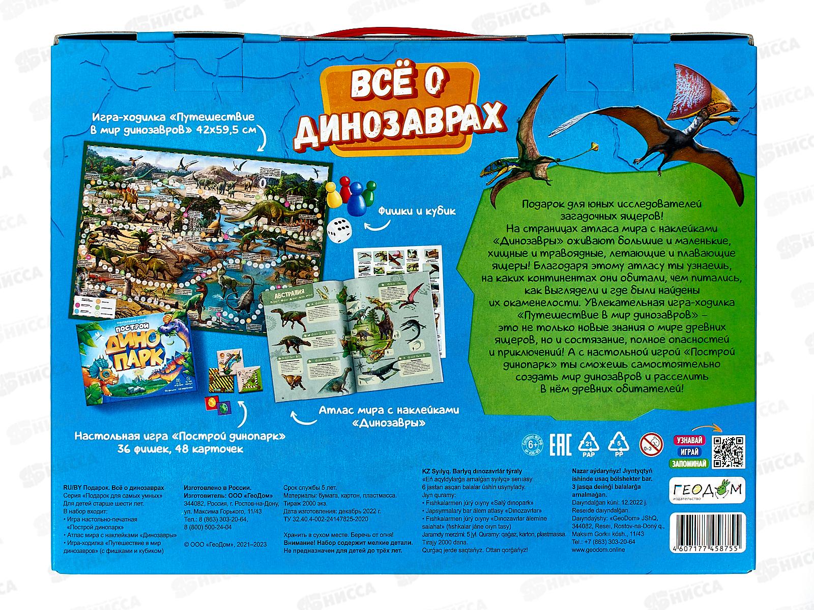 Подарок. Все о динозаврах.Наст.игра+игра-ходилка+Атлас, 58755
