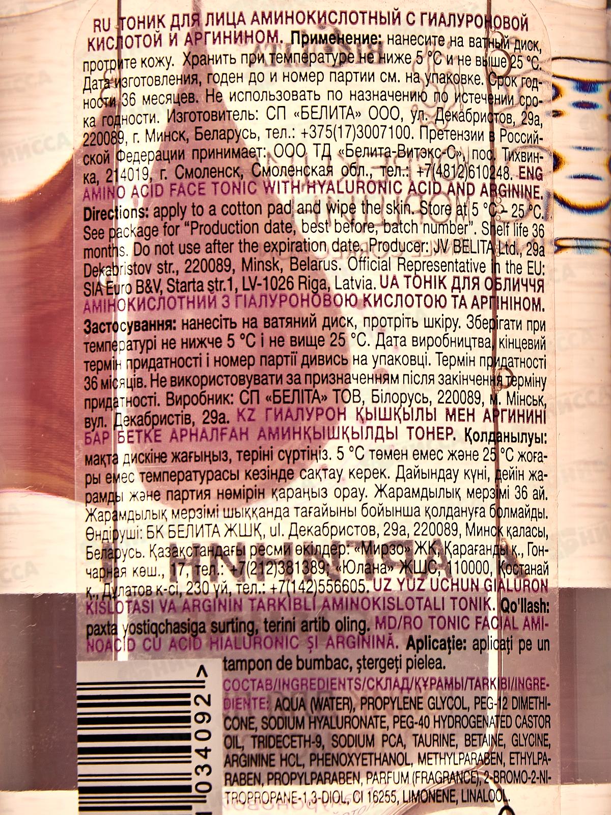 Коррекция Морщин Тоник для лица Аргинин 200мл *12